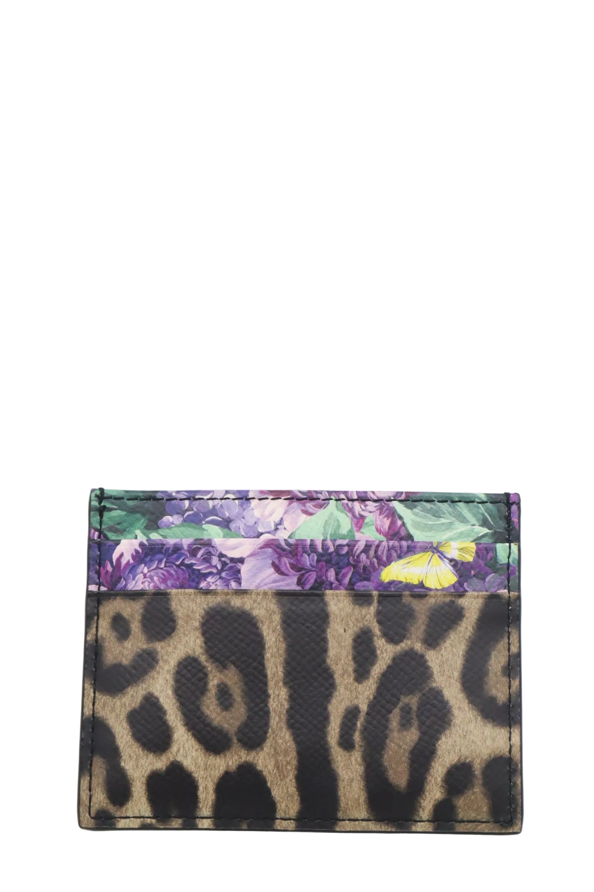Dieses ausgefallene Kartenetui von Dolce & Gabbana vereint wilde Animal-Prints mit floraler Eleganz. Die Vorderseite zeigt ein markantes Leopardenmuster, während die oberen Kartenschlitze mit einem farbenfrohen Blumen- und Schmetterlingsmotiv für einen spannenden Stilbruch sorgen. Gefertigt aus strukturiertem Leder, ist das Etui nicht nur ein modisches Highlight, sondern auch besonders langlebig und praktisch für den Alltag.