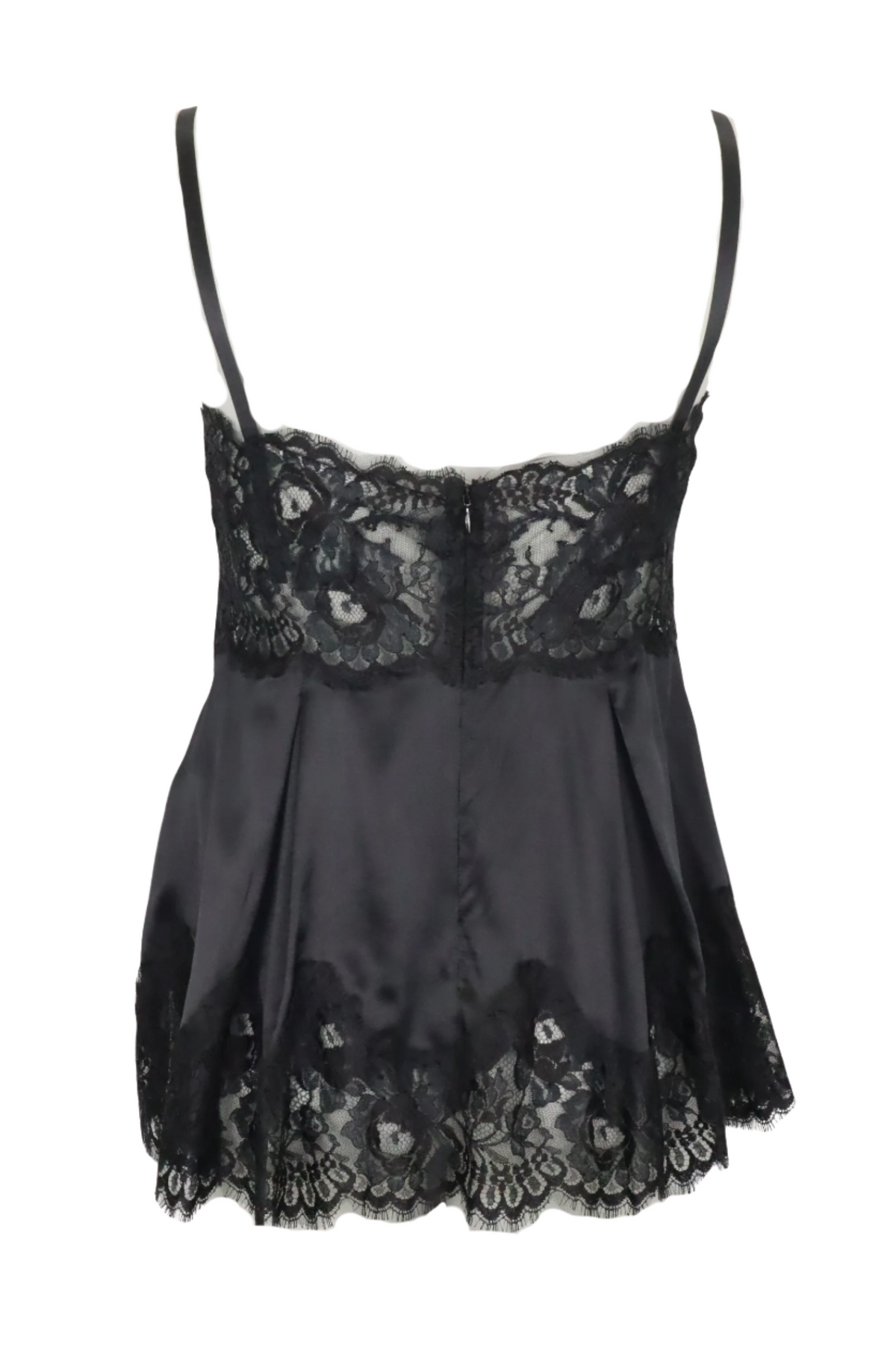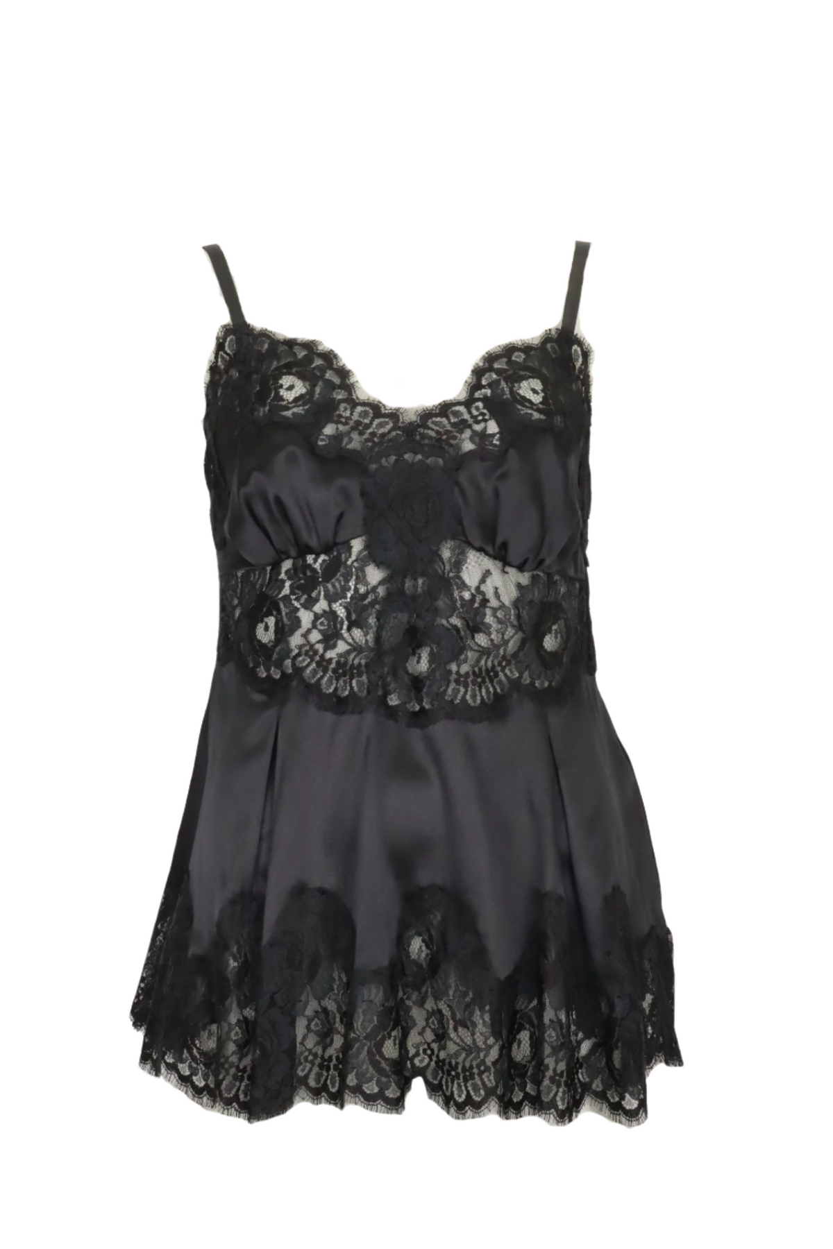 Dieses verführerische Kleid von Dolce & Gabbana kombiniert luxuriöse Seiden-Optik mit femininer Spitze für einen stilvollen, sinnlichen Auftritt. Das kurze, figurbetonte Design betont gekonnt die Silhouette, während florale Spitzeneinsätze am Dekolleté, an der Taille und am Saum edle Akzente setzen. Die zarten Spaghettiträger runden den Look perfekt ab. Ob als Lingerie-inspirierter Partylook oder luxuriöses Statement-Piece – dieses Kleid zieht garantiert alle Blicke auf sich.