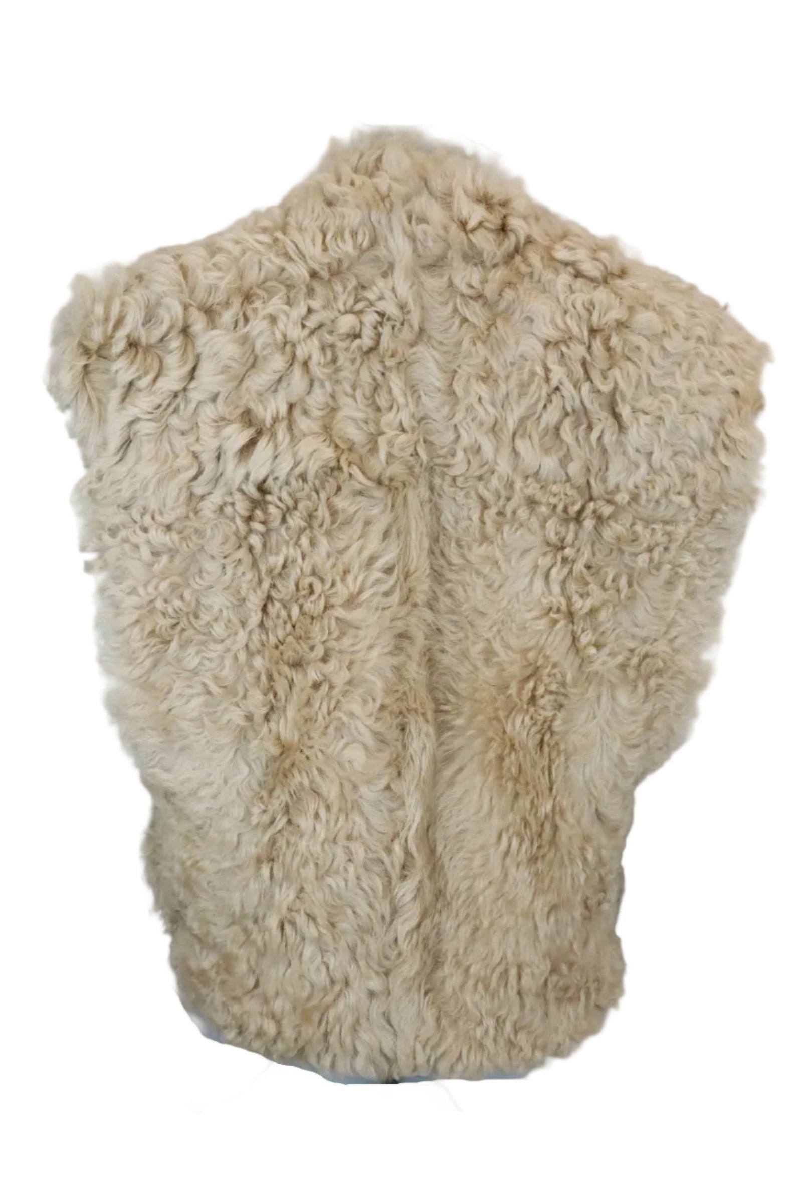 Diese luxuriöse Weste von Isabel Marant ist ein absolutes Highlight für den stilvollen Winter-Look. Gefertigt aus echtem, naturbelassenem Lammfell in einem warmen Beigeton, besticht sie durch ihre weiche Haptik und die charakteristische Lockenstruktur. Die ärmellose Silhouette und der großzügige Kragen verleihen dem Design eine lässige Eleganz mit einem Hauch Boho-Flair.