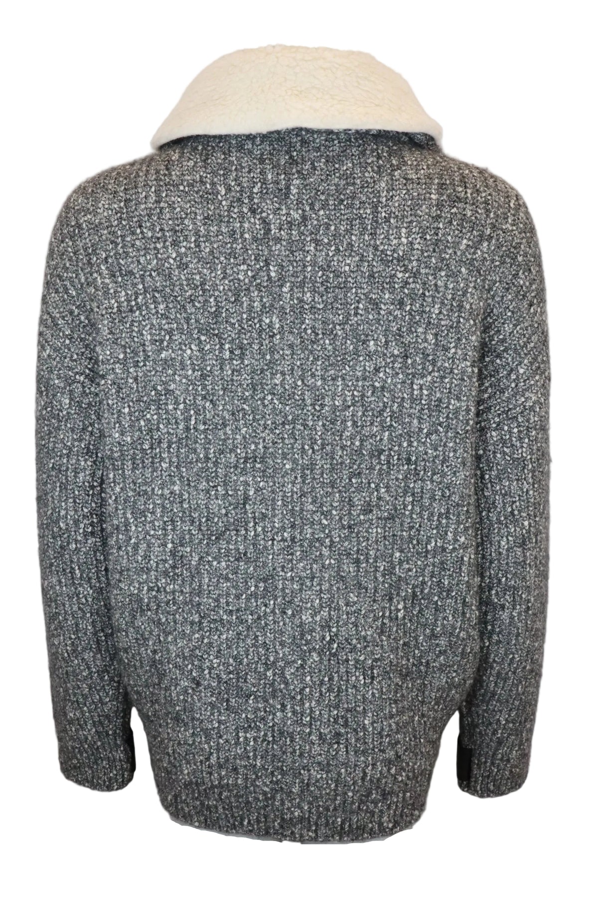 Diese stilvolle Jacke von Isabel Marant kombiniert urbanen Chic mit gemütlicher Wärme. Das grob gestrickte Wollmaterial in Melange-Optik trifft auf edle Details aus schwarzem Leder an Taschen, Frontleiste und Ärmeln – ein spannender Materialmix, der Eleganz und Coolness vereint. Innen sorgt ein weiches Fleece-Futter im Kragenbereich für kuscheligen Tragekomfort.