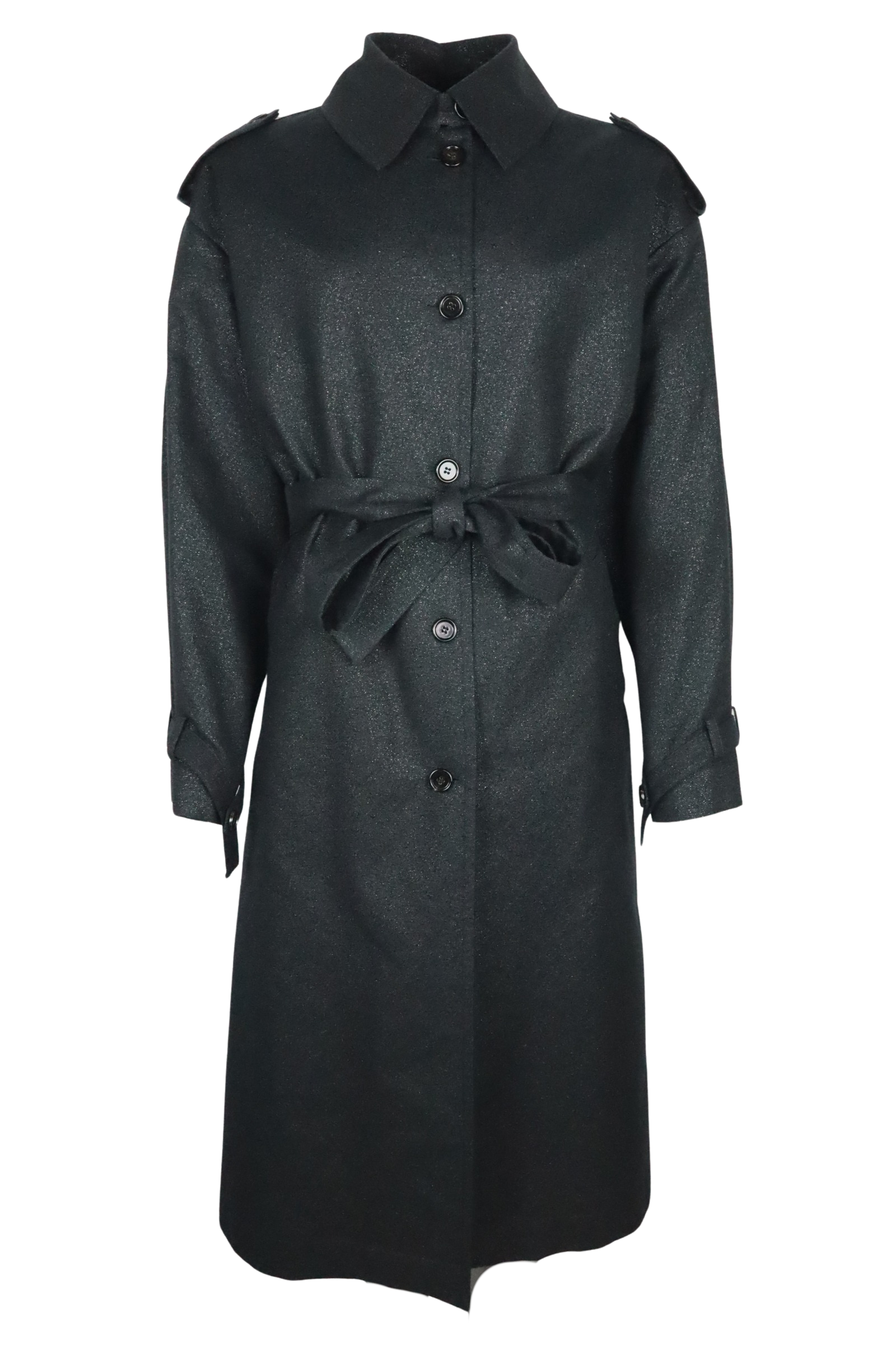 Dieser elegante Mantel von Dolce & Gabbana verkörpert zeitlose Raffinesse und feminine Zurückhaltung. Aus einem dezent schimmernden, tiefschwarzen Stoff gefertigt, besticht er durch seine klare Linienführung und klassische Details wie Schulterriegel, Knopfleiste und Bindegürtel in der Taille. Die lange Silhouette schmeichelt der Figur und macht diesen Mantel zum perfekten Begleiter für stilvolle Auftritte bei kühlem Wetter.