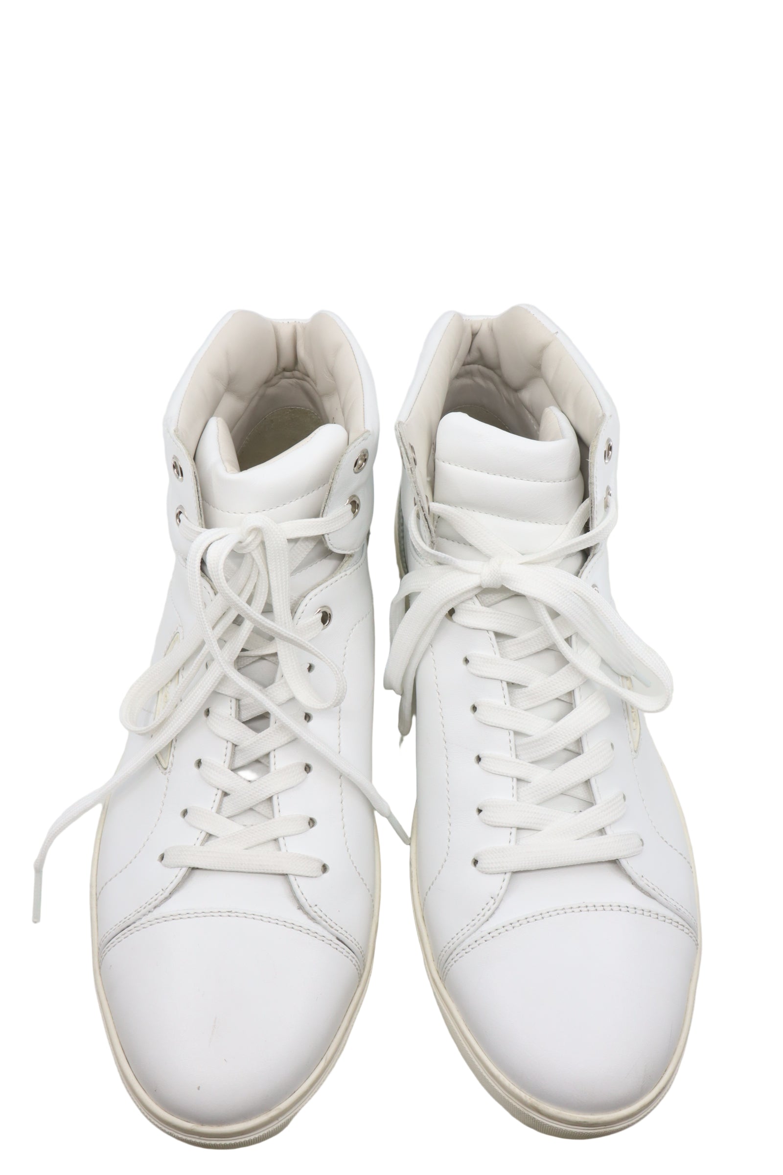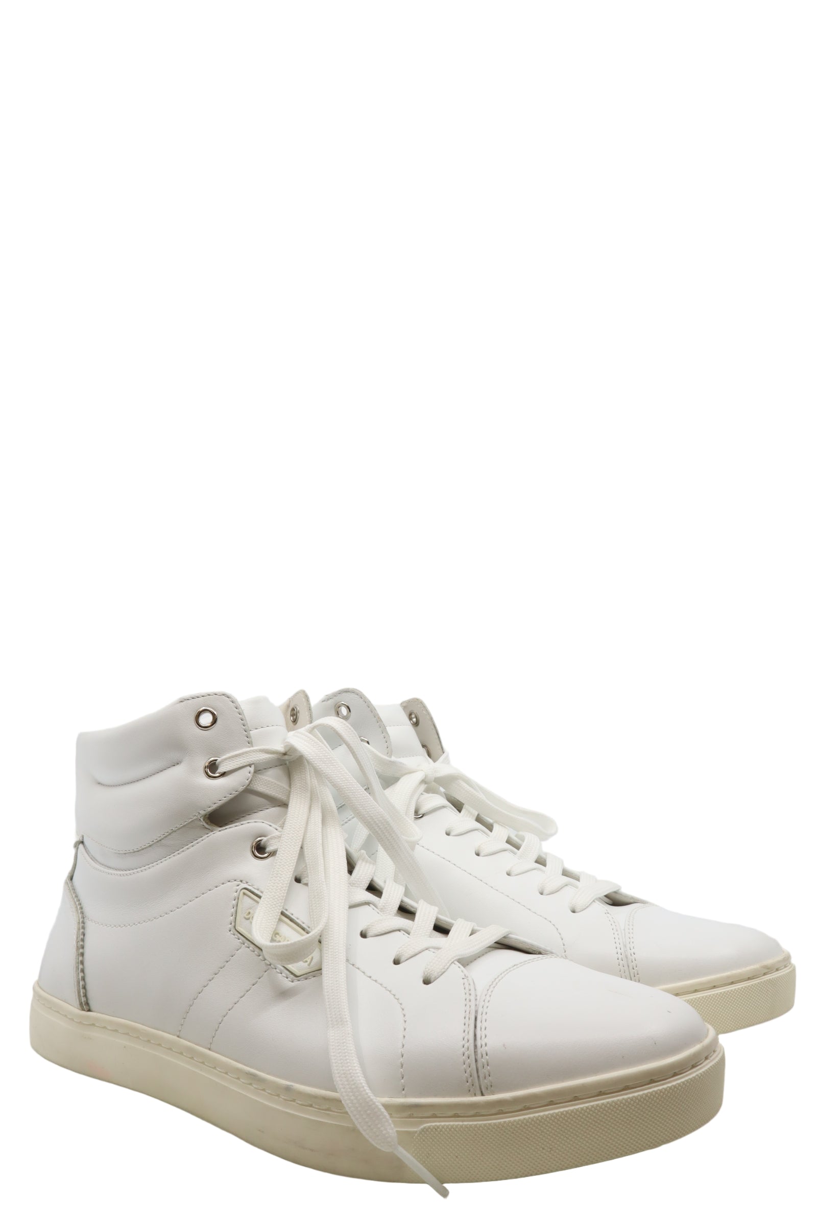 Zeitlos, sportlich und stilvoll – dieser weiße High-Top Sneaker von Dolce & Gabbana ist ein echtes Allround-Talent. Gefertigt aus hochwertigem, glattem Leder, überzeugt der Schuh durch sein minimalistisches Design, das durch feine Ziernähte und dezente Logo-Details an der Seite abgerundet wird.