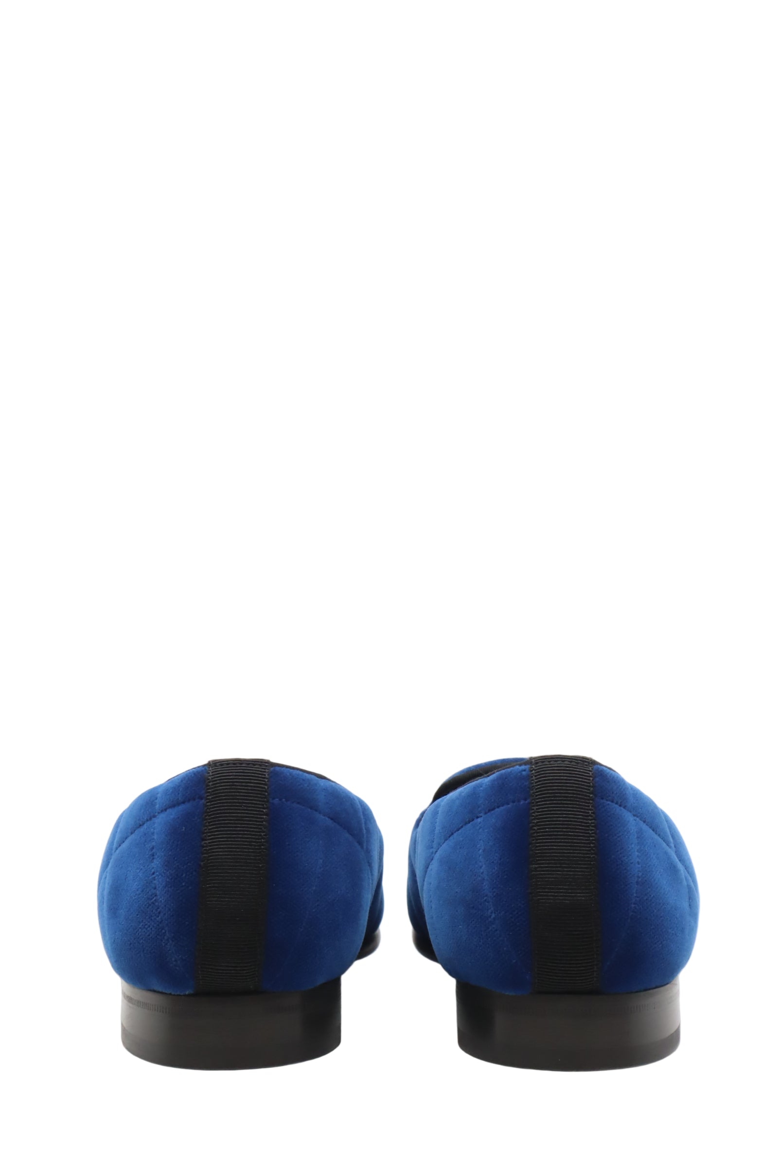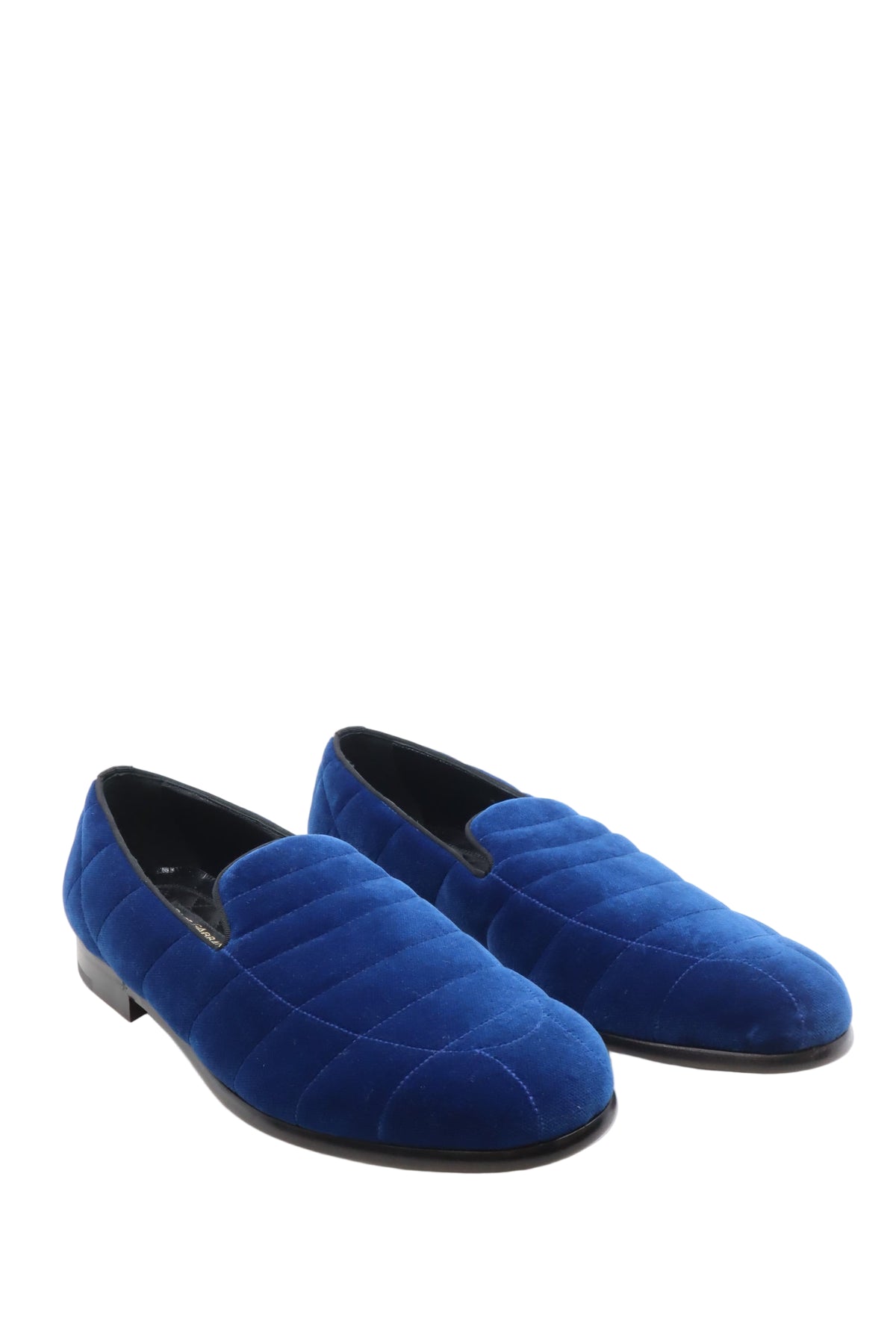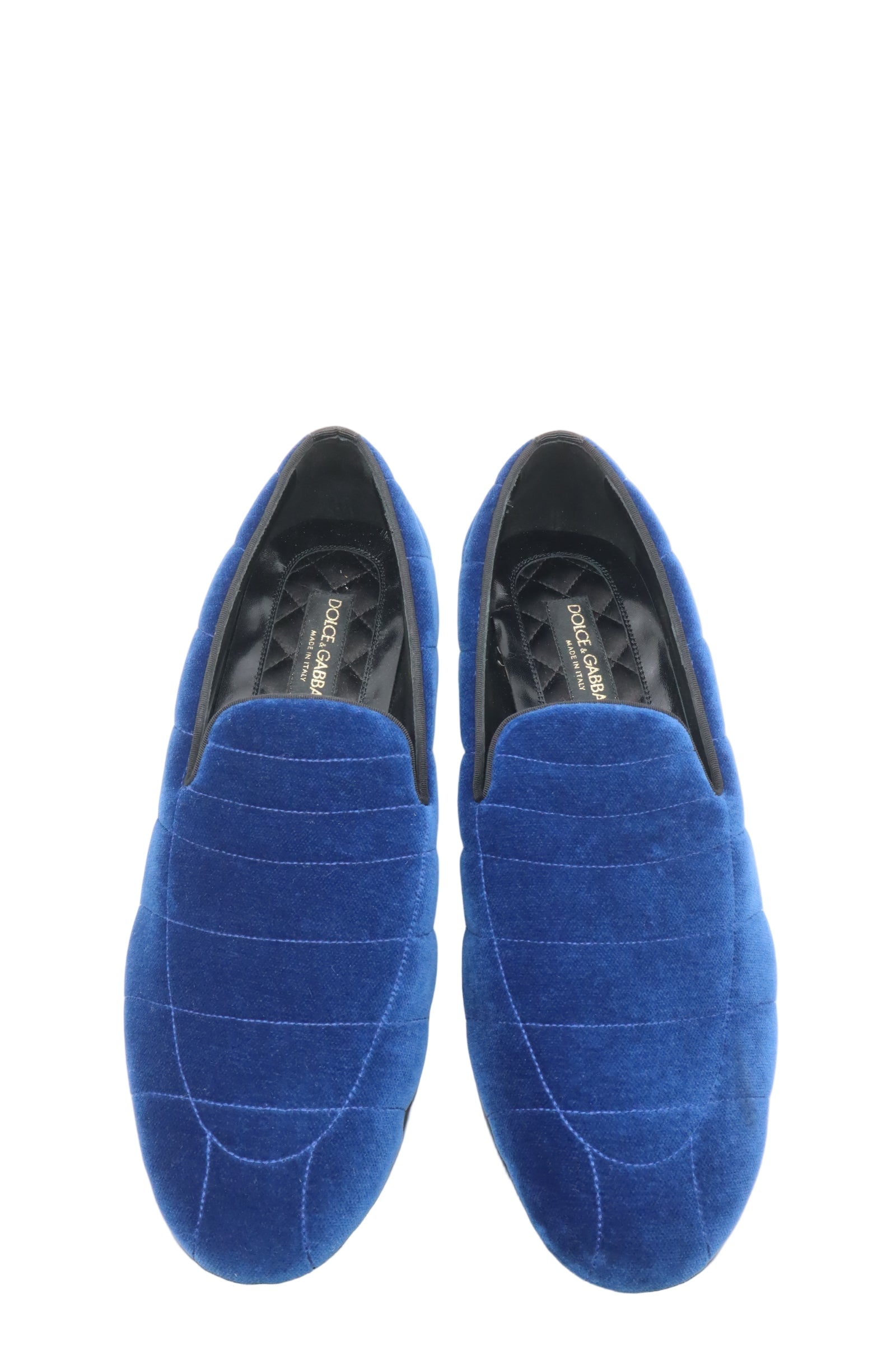 Diese luxuriösen Slipper von Dolce & Gabbana in intensivem Königsblau sind ein echter Ausdruck von Stil und Raffinesse. Der samtige Veloursstoff mit edler Steppung sorgt für ein außergewöhnlich weiches Tragegefühl und zieht alle Blicke auf sich – perfekt für besondere Anlässe oder stilvolle Abendauftritte.