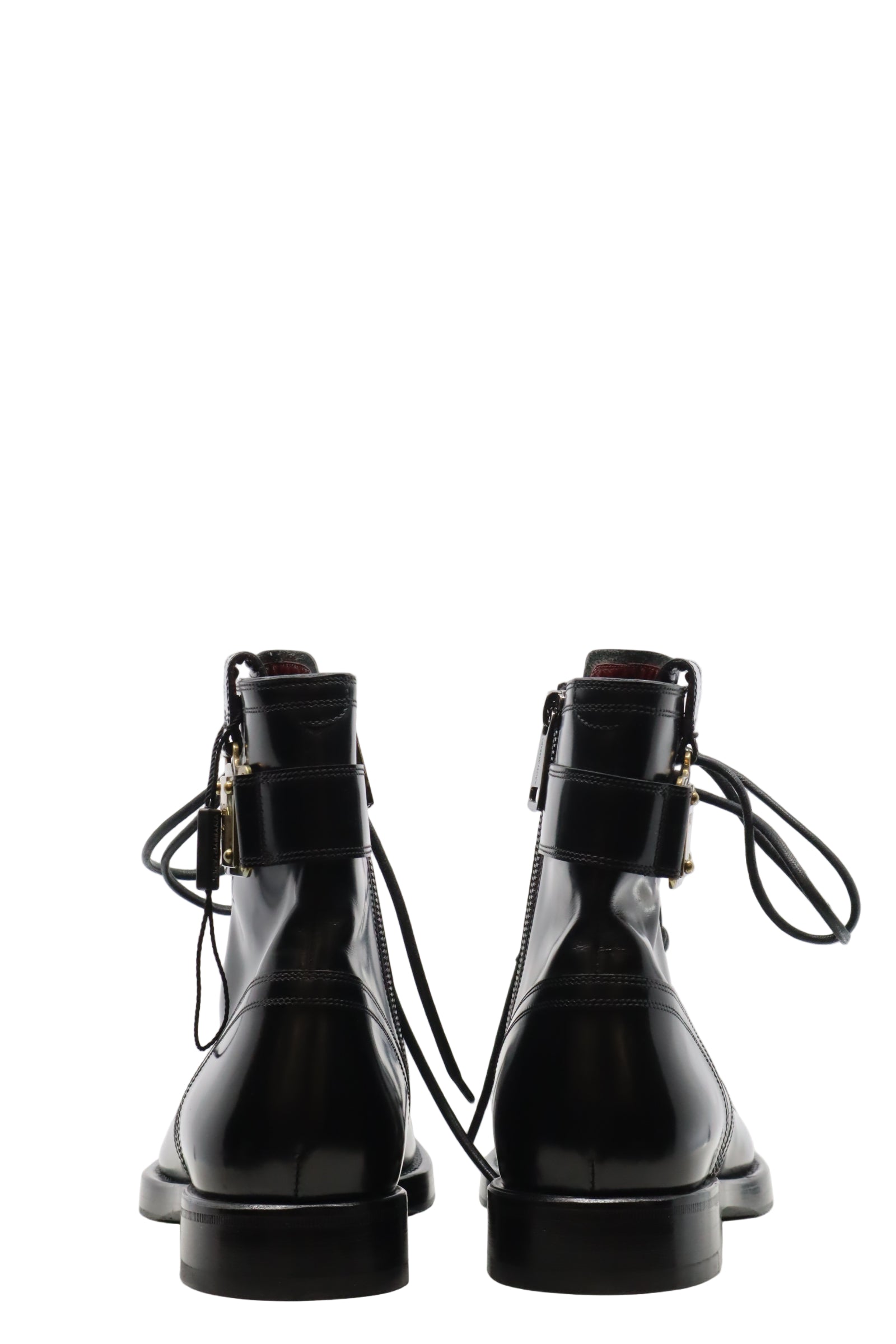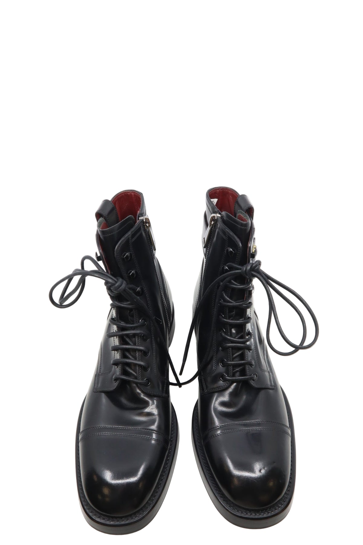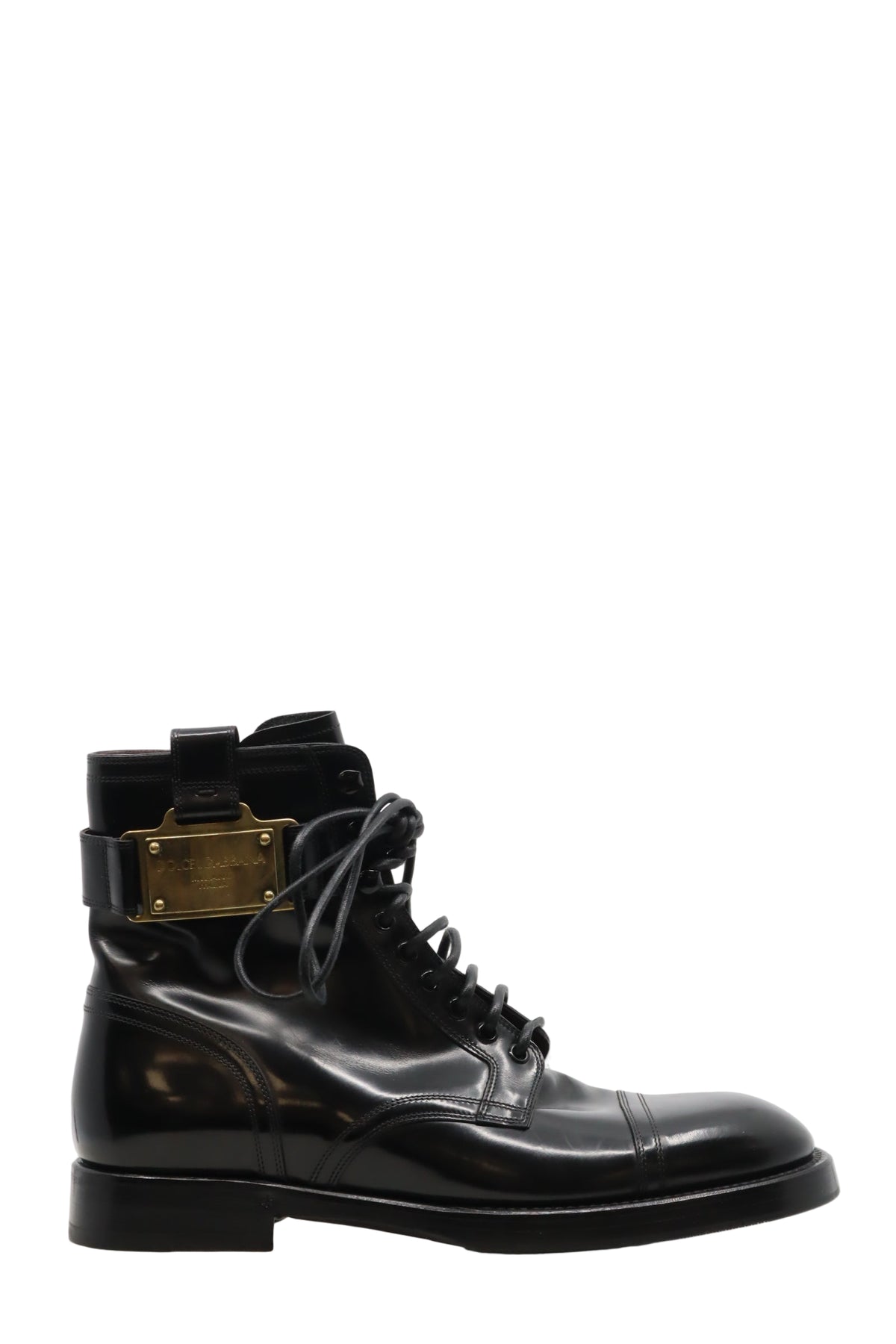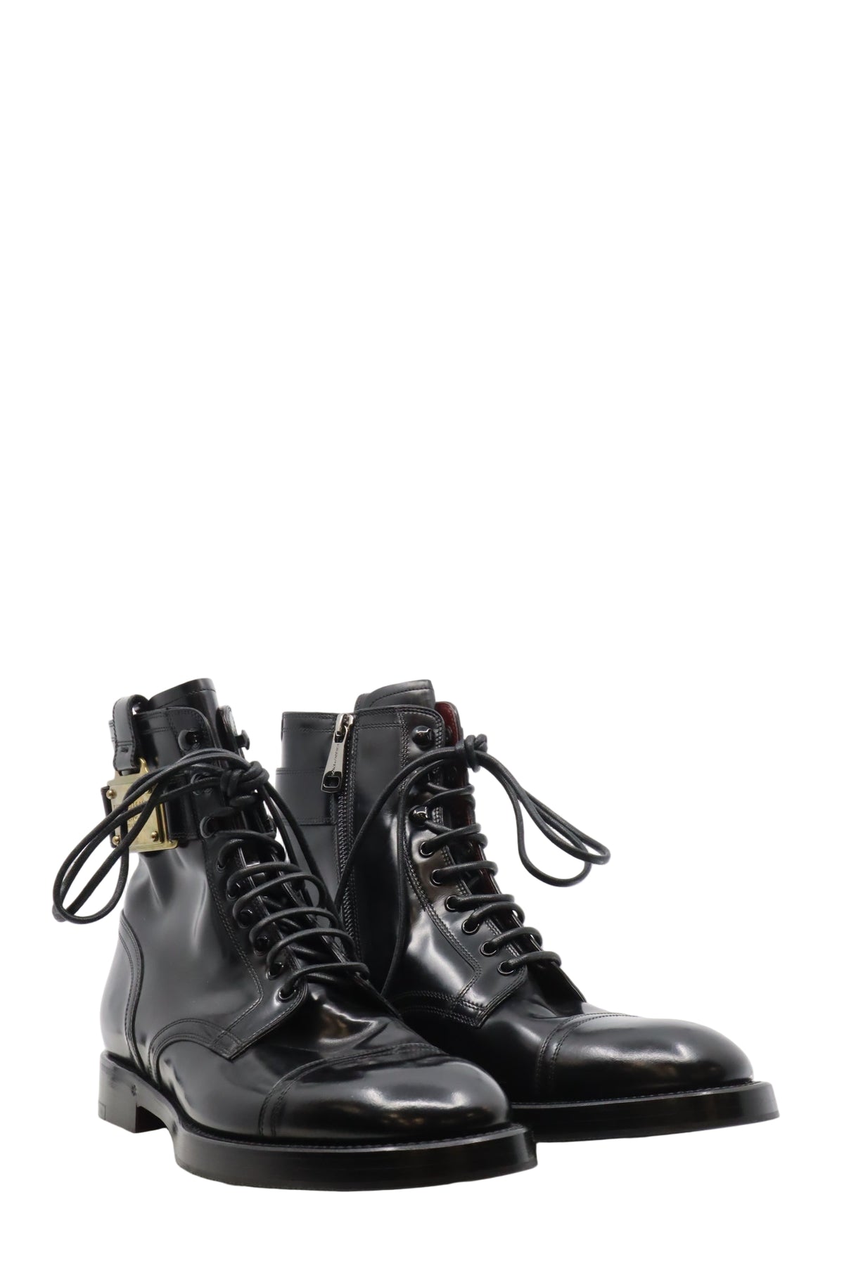 Diese hochwertigen Schnürboots von Dolce & Gabbana vereinen militärische Eleganz mit luxuriösem Design. Gefertigt aus glänzendem schwarzem Glattleder, überzeugen sie durch ihre präzise Verarbeitung und starke Präsenz. Das markante goldfarbene Metallemblem am Schaft verleiht dem Modell einen unverwechselbaren Charakter. Die stabile Ledersohle und der hohe Schaft sorgen für perfekten Halt – ein Statement-Piece für Herren mit Stilbewusstsein und Selbstvertrauen.