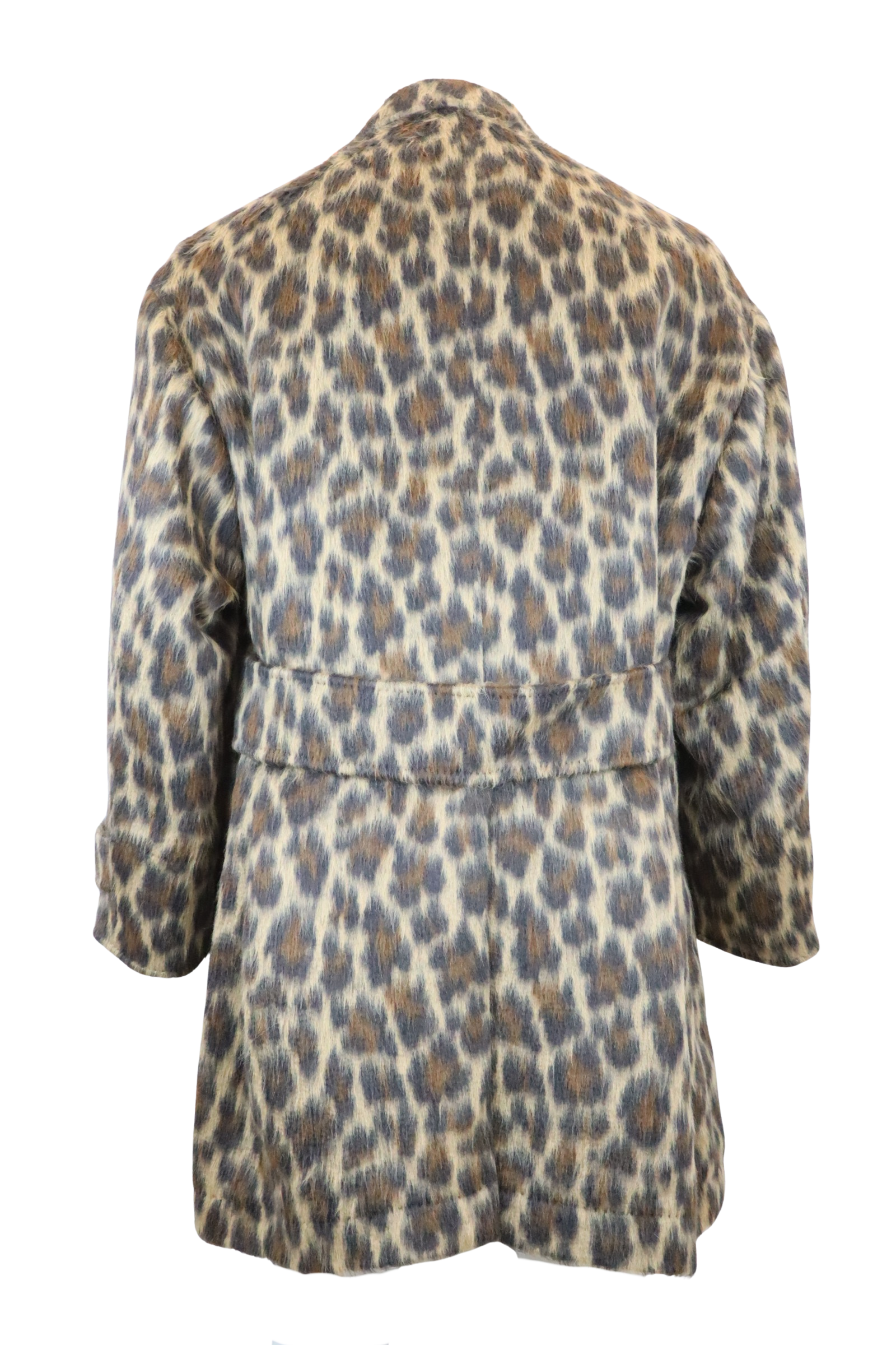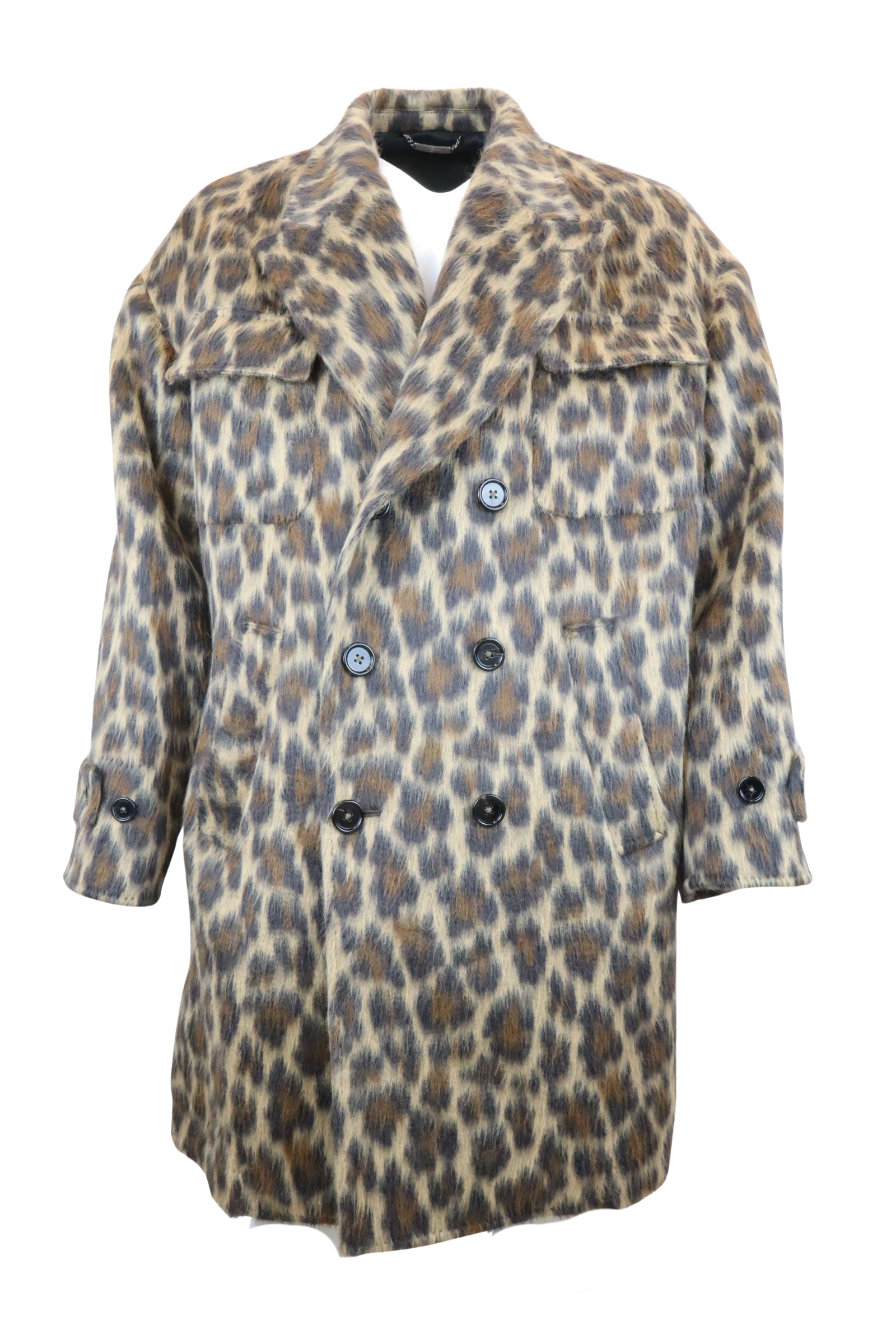 Dieser extravagante Mantel von Dolce & Gabbana überzeugt mit einem markanten Leopardenmuster und luxuriöser Felloptik. Das flauschige, strukturierte Material verleiht dem Design eine glamouröse Ausstrahlung, während der doppelte Knopfverschluss und die großen Revers klassische Eleganz unterstreichen. Die aufgesetzten Brust- und Seitentaschen sorgen für einen stilvollen Utility-Look mit italienischem Chic.