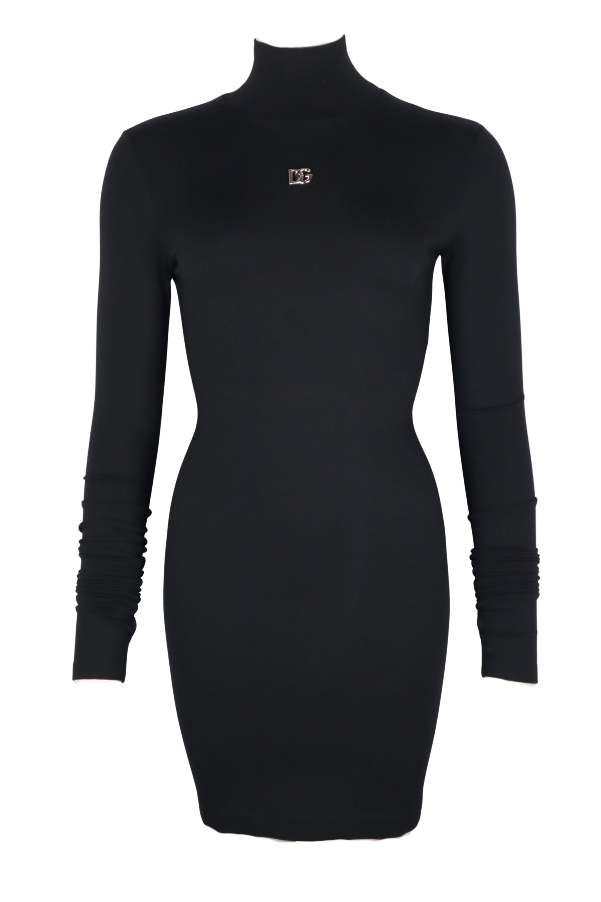 Ein dezentes Highlight bildet das silberne „DG“-Logo auf Brusthöhe, das dem Kleid einen edlen Markenakzent verleiht. Ideal kombinierbar mit High Heels oder Boots – dieses Kleid ist ein vielseitiger Allrounder für Abendveranstaltungen, Dinner-Dates oder stilvolle Events.