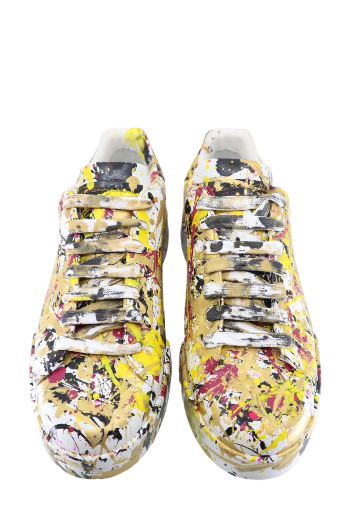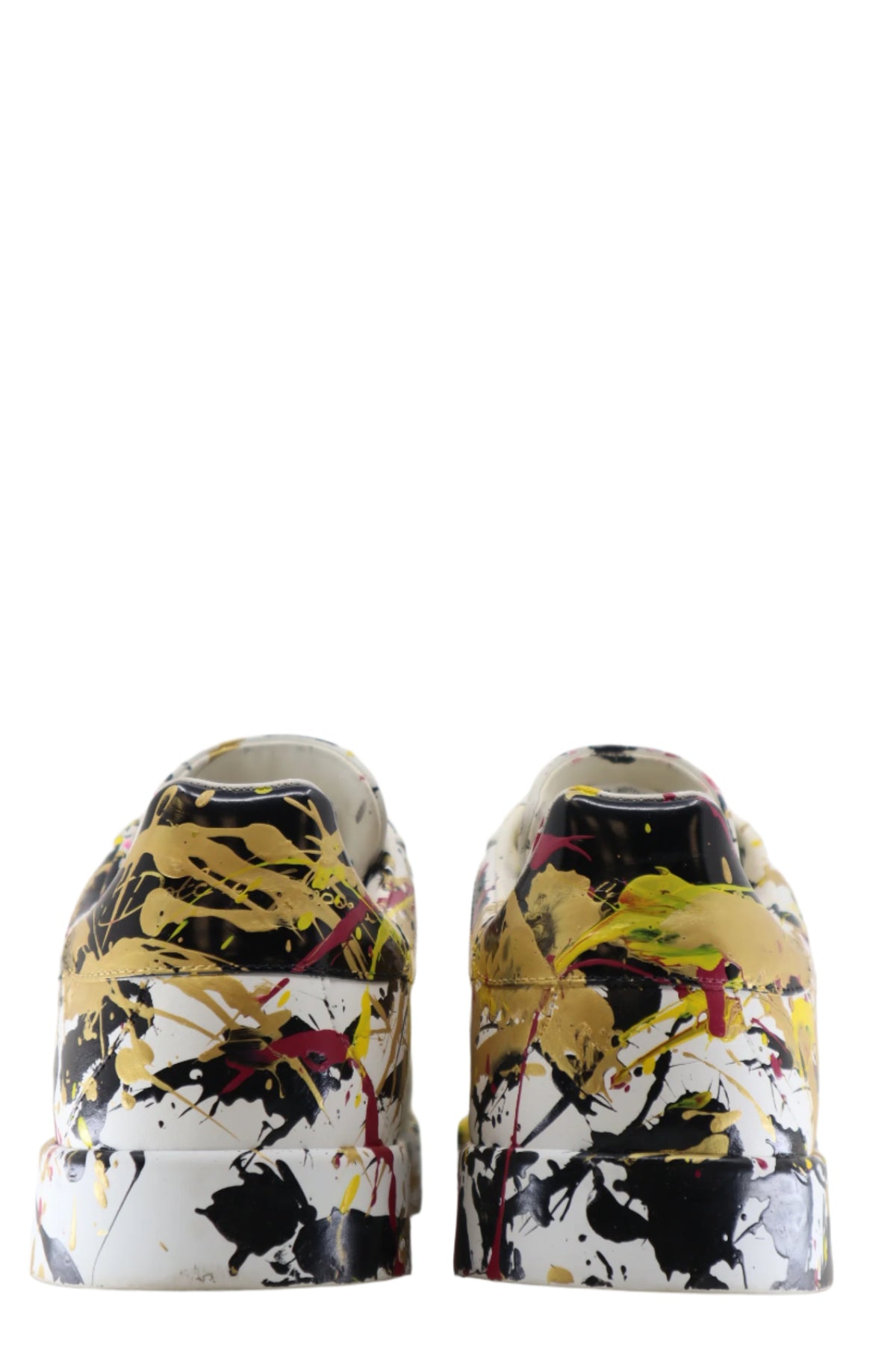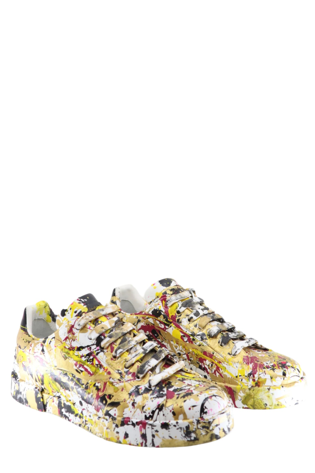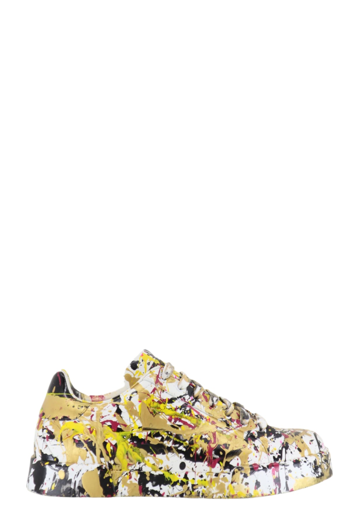 Diese Herrensneaker von Dolce & Gabbana sind ein echtes Statement für Individualität und kreativen Stil. Das außergewöhnliche Design mit buntem Farbspritzer-Muster in Gold, Schwarz, Rot, Gelb und Weiß erinnert an moderne Street-Art und hebt sich bewusst von klassischen Sneakern ab. Die massive Silhouette und die durchgängige Bemalung – von der Sohle bis zum Schaft – machen jedes Paar zu einem Kunstwerk. Perfekt für modebewusste Männer, die auffallen wollen, ohne auf Komfort zu verzichten.