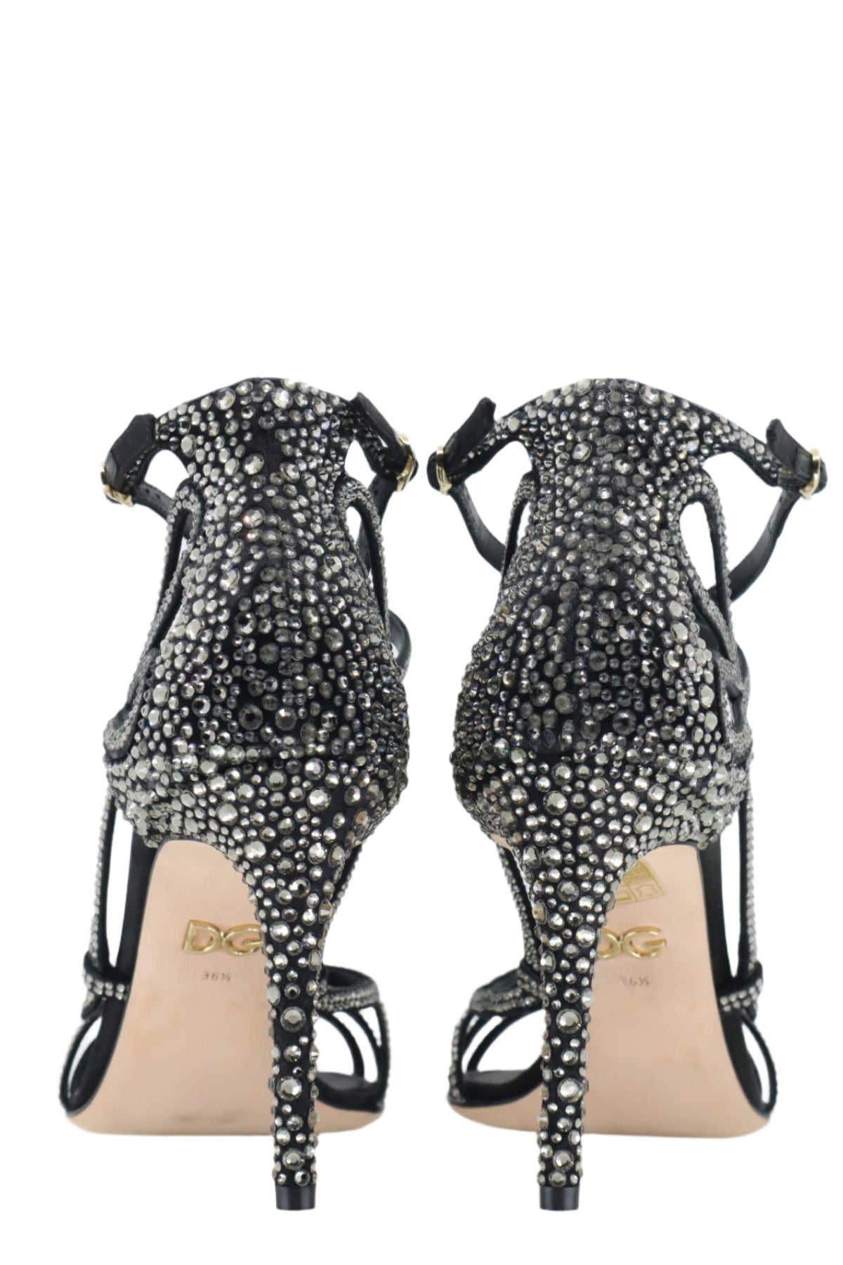 Diese glamourösen Sandaletten von Dolce & Gabbana sind der Inbegriff von Eleganz und femininer Raffinesse. Das schwarze Design wird durch zahllose funkelnde Strasssteine veredelt, die jeden Schritt zum Blickfang machen. Die filigranen Riemchen und der elegante Fersenbereich sorgen für eine sinnliche Silhouette, während der hohe Absatz Ihre Beine optisch streckt. Perfekt für Abendveranstaltungen, Galas oder besondere Anlässe, bei denen ein stilvoller Auftritt garantiert ist.