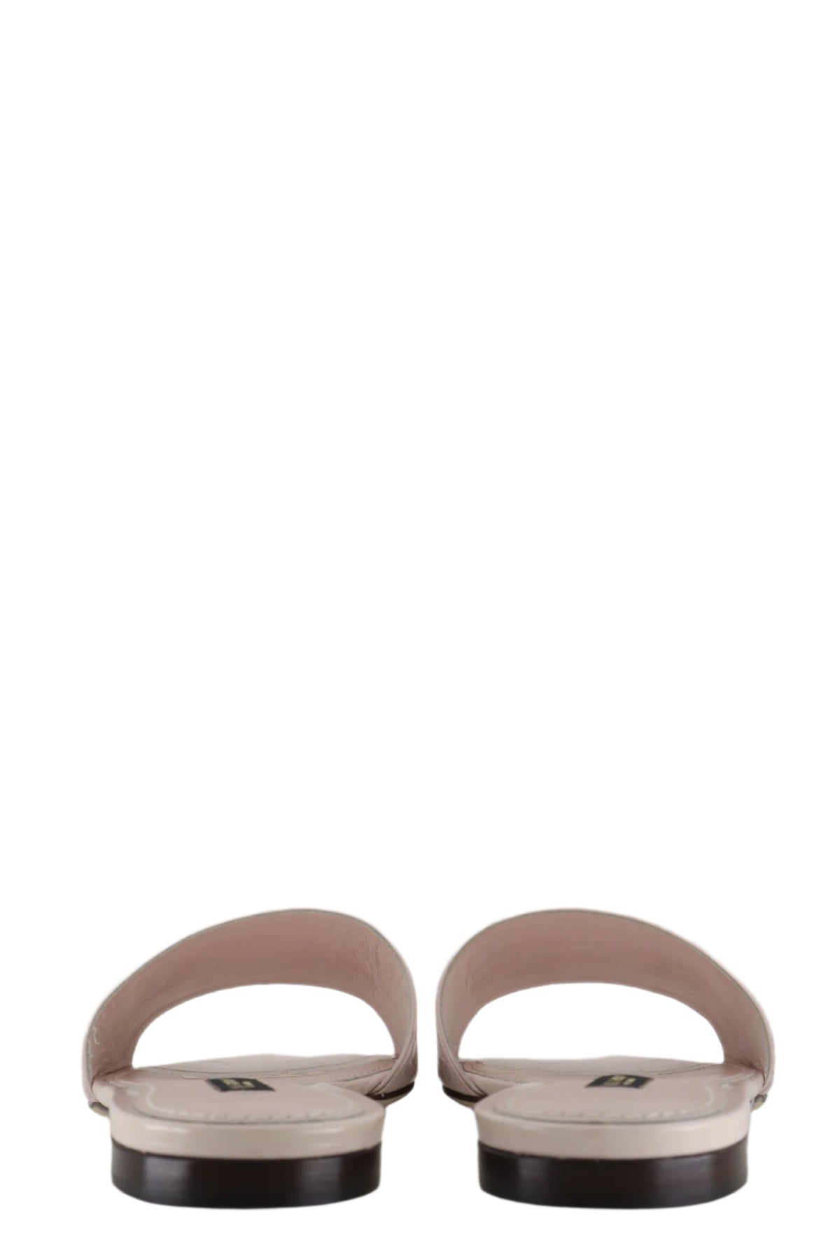 Diese eleganten Slides von Dolce & Gabbana überzeugen mit zeitloser Schlichtheit und einem Hauch Raffinesse. Der zarte Roséton in edler Kroko-Prägung verleiht dem Design eine luxuriöse Note, während die flache Sohle ein angenehmes Tragegefühl für warme Tage bietet. Ob zu Sommerkleid, Leinenhose oder Strandoutfit – diese Sandalen sind die perfekte Wahl für stilvolle Auftritte mit italienischem Flair.