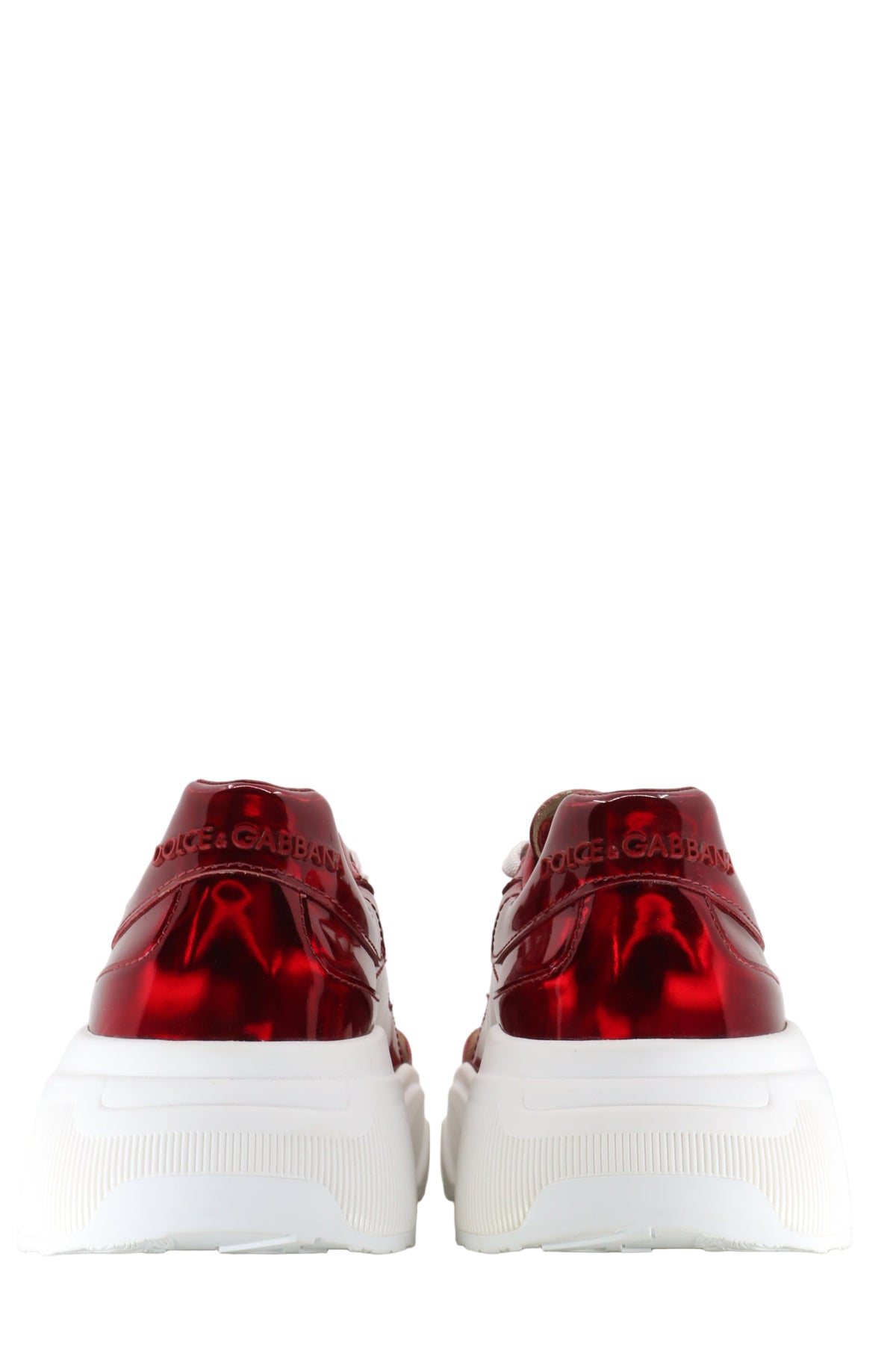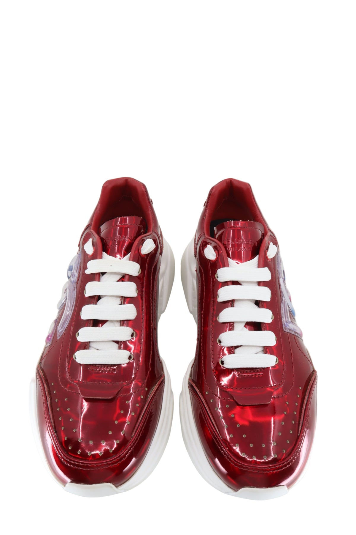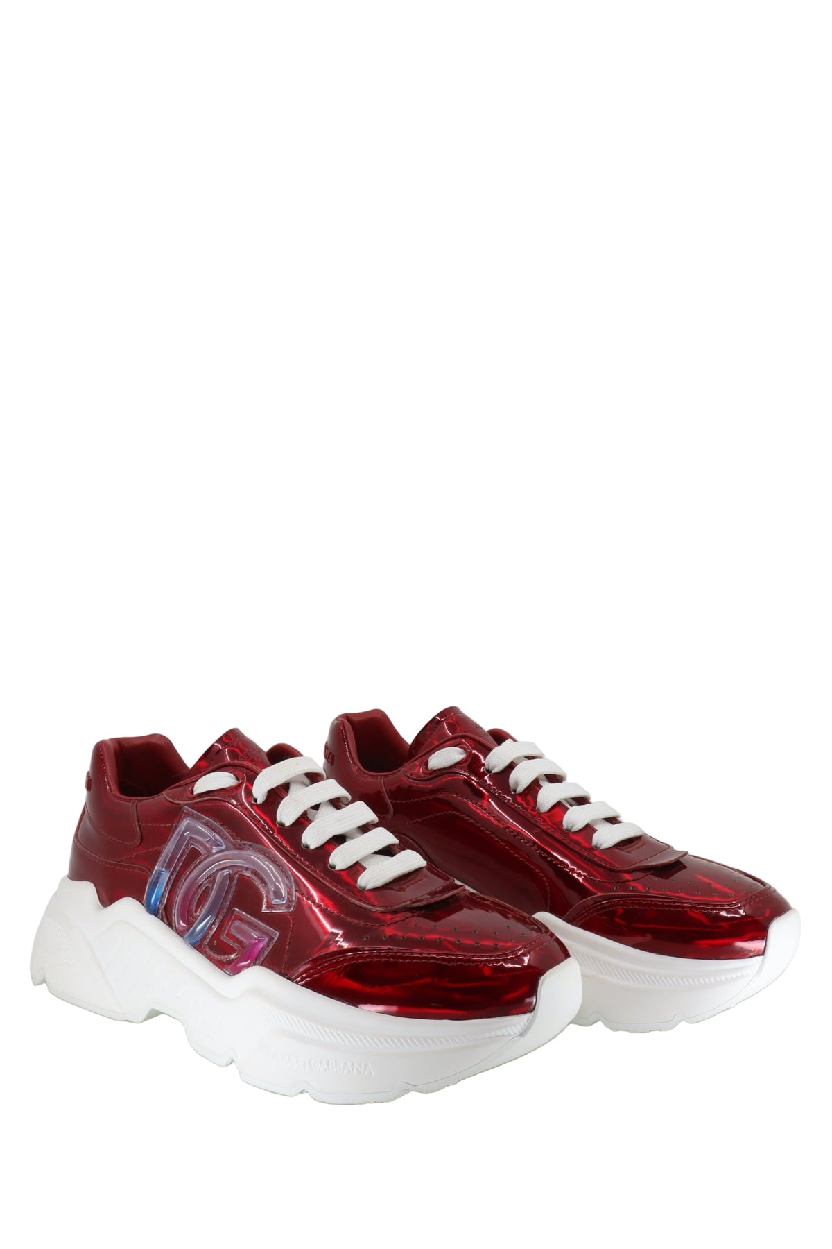 Setzen Sie ein kraftvolles Statement mit diesen extravaganten Sneakern von Dolce & Gabbana – ein echtes Highlight für Fashion-Liebhaberinnen mit Sinn für Stil und Individualität. Der glänzende Metallic-Look in tiefem Rot verleiht dem Schuh eine auffällige, luxuriöse Ausstrahlung. Besonders markant ist das transparente 3D-Logo "DG" an der Seite, das dem Design eine futuristische Note gibt. Die voluminöse, weiße Chunky-Sohle sorgt für höchsten Tragekomfort und einen modernen Streetwear-Look.