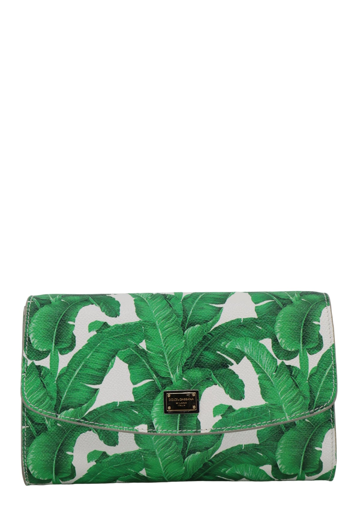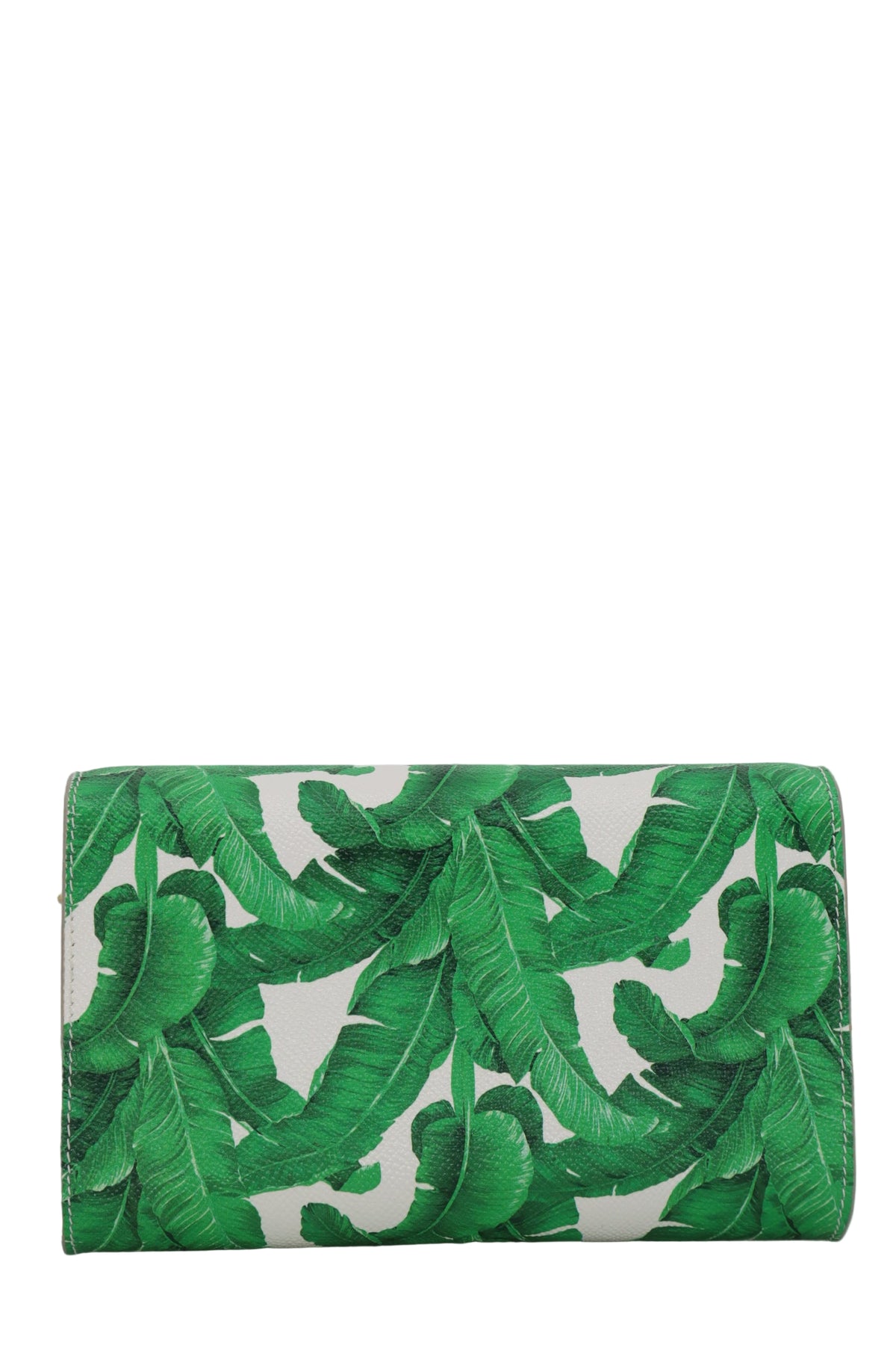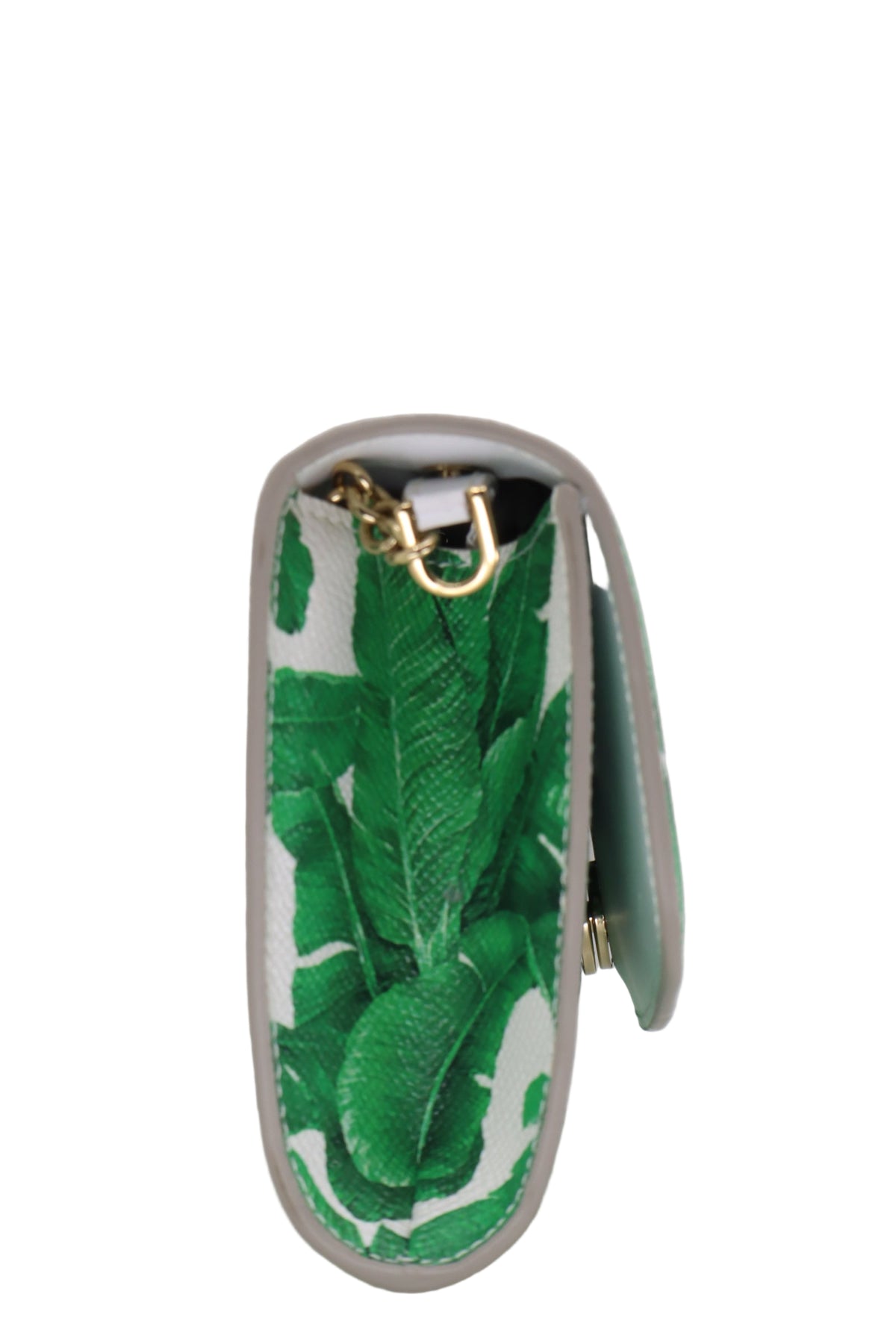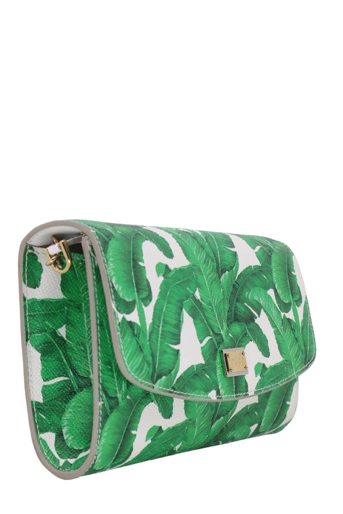 Frisch, tropisch und luxuriös – diese Dolce & Gabbana Tasche bringt echtes Urlaubsfeeling in Ihre Garderobe. Das ikonische Bananenblatt-Design in leuchtendem Grün auf weißem Hintergrund verleiht ihr einen lebendigen, sommerlichen Look. Die goldfarbene Gliederkette sorgt für elegante Akzente und macht die Tasche zum perfekten Begleiter – ob bei einem stilvollen Stadtbummel oder beim Dinner auf der Terrasse. Das strukturierte Leder garantiert Langlebigkeit und eine edle Haptik.