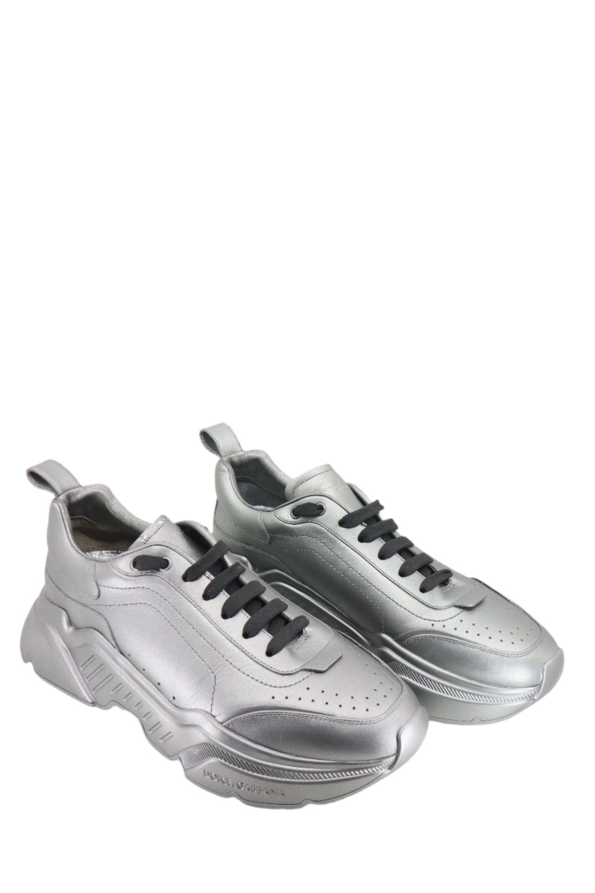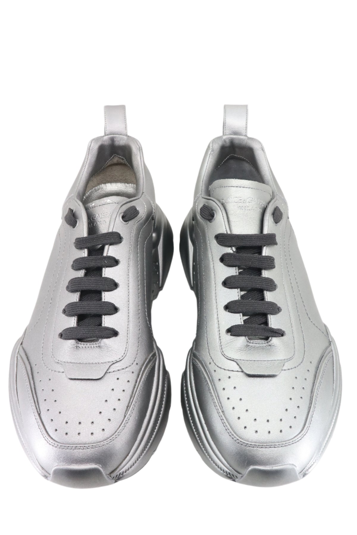 Futuristisch, markant und absolut trendstark – diese silberfarbenen Chunky Sneaker von Dolce & Gabbana sind ein echtes Fashion-Statement für Männer mit Stilbewusstsein. Das glänzende Obermaterial verleiht dem sportlichen Design eine edle Hightech-Optik, während die voluminöse Sohle für modernen Streetstyle und angenehmen Laufkomfort sorgt. Schwarze Schnürsenkel setzen einen kontrastreichen Akzent. Ob zu Jogpants, Denim oder cleanem All-Black-Look – mit diesen Sneakern sind Sie der Blickfang.