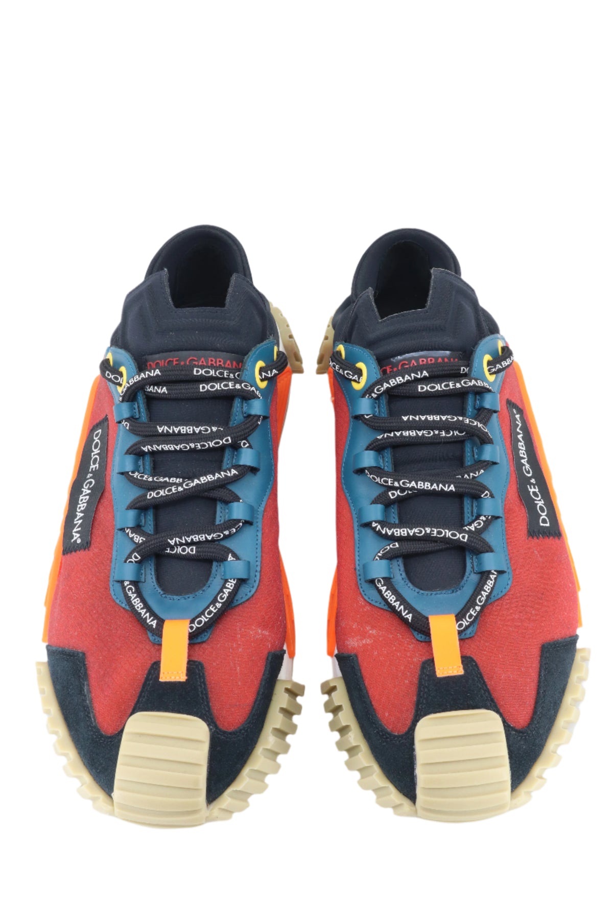 Diese auffälligen Sneaker von Dolce & Gabbana sind ein echter Hingucker für alle, die sportlichen Komfort mit modischer Extravaganz verbinden wollen. Die Kombination aus rotem Textil, blauen Akzenten und markanten, orangefarbenen Gummielementen sorgt für einen dynamischen, urbanen Look. Die profilierte Sohle bietet optimalen Halt und das stretchige Fersenmaterial garantiert ein angenehmes Tragegefühl – perfekt für aktive Tage mit modischem Anspruch.