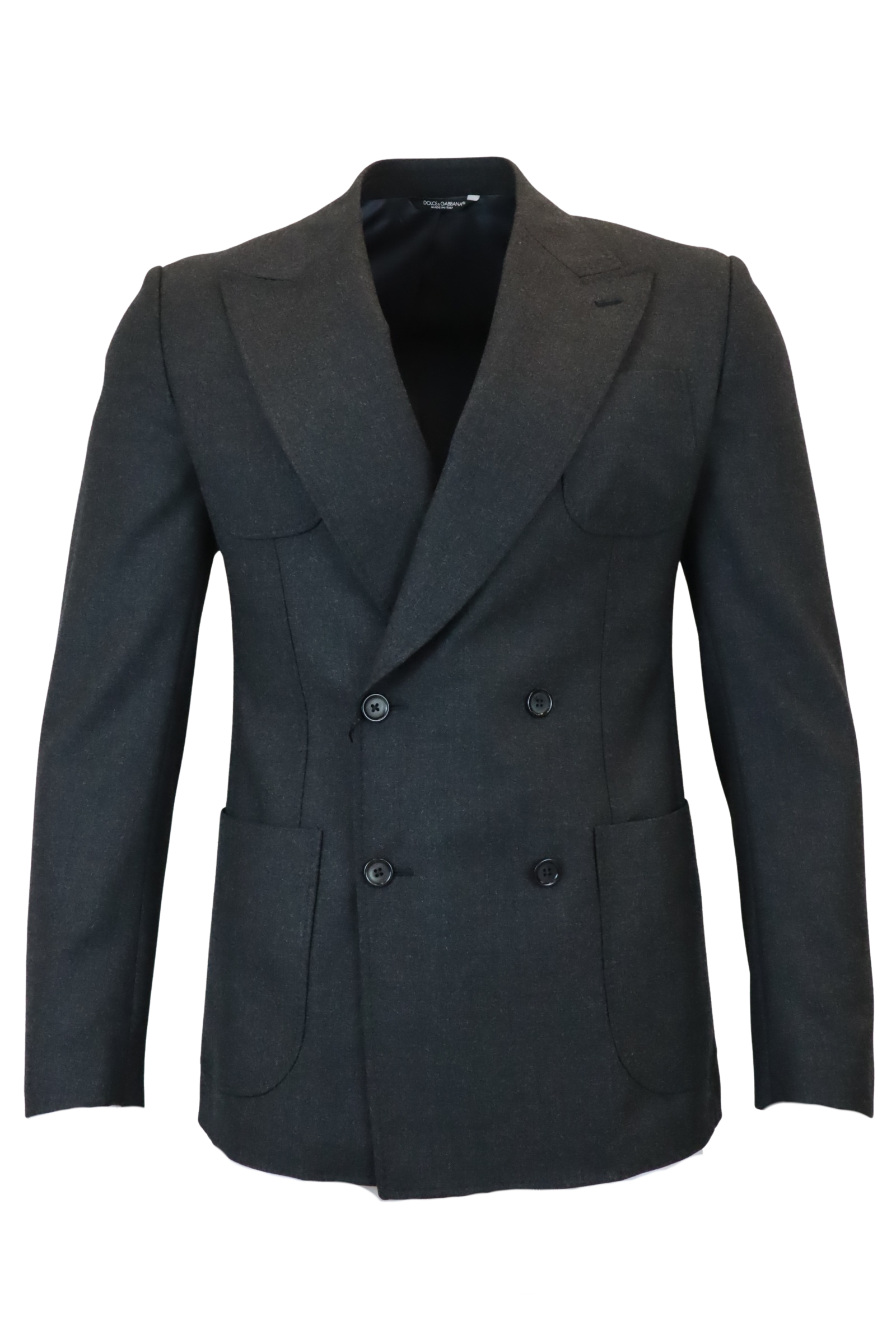 Dieser klassische Doppelreiher-Blazer von Dolce & Gabbana verkörpert italienische Schneiderkunst auf höchstem Niveau. Gefertigt in einem tiefen Anthrazitton überzeugt das Modell mit markantem Revers, aufgesetzten Taschen und einer körperbetonten Silhouette. Die strukturierte, feine Wollqualität sorgt für Eleganz und angenehmen Tragekomfort – ideal für Business-Outfits oder elegante Abendlooks.