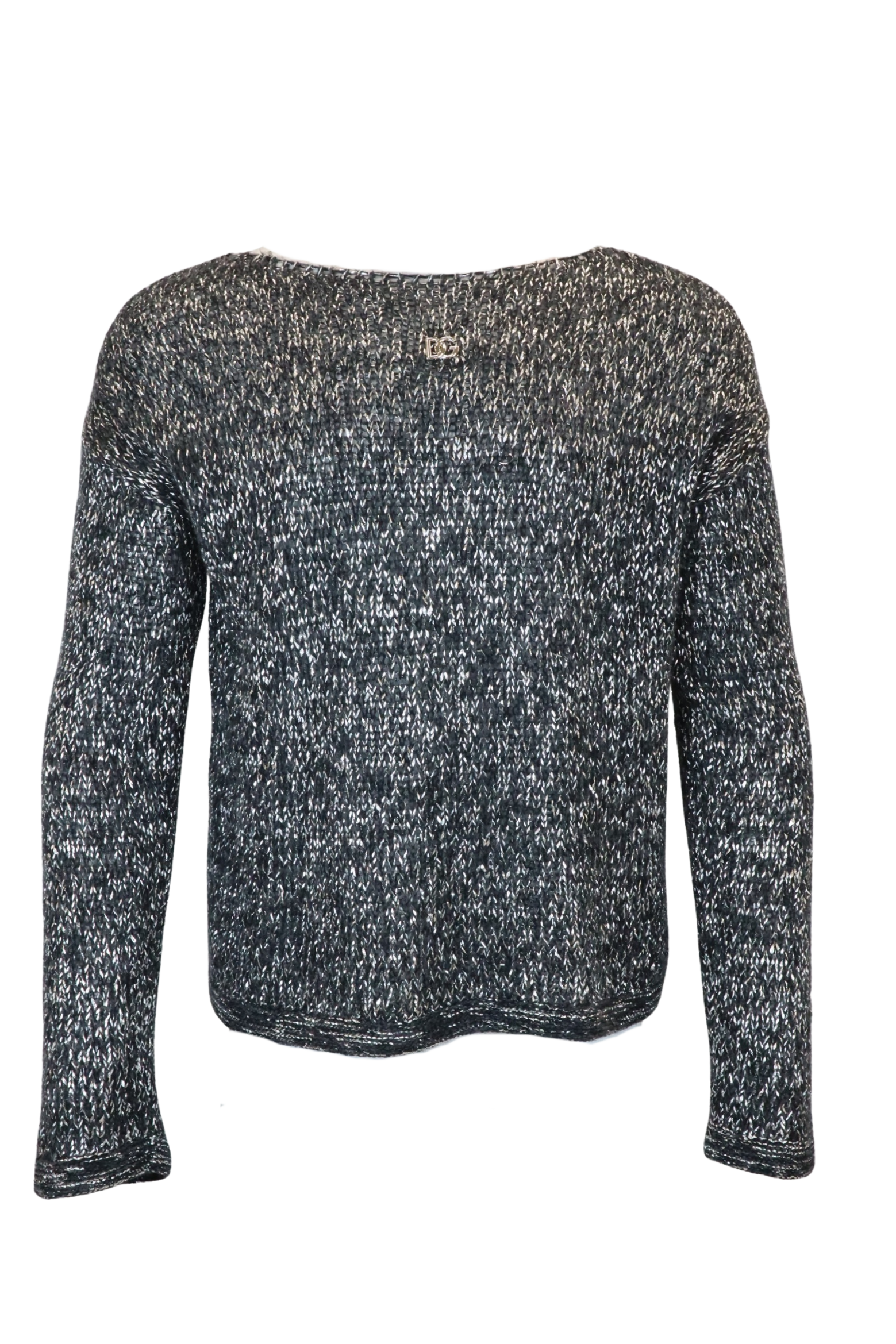 Schlicht mit raffiniertem Twist – dieser Pullover von Dolce & Gabbana vereint zurückhaltendes Design mit hochwertigem Strick in Schwarz-Silber-Melange. Die grobe Maschenstruktur verleiht dem Modell einen lässigen, handgearbeiteten Look, während das dezente DG-Logo am Halsausschnitt für einen feinen Markenakzent sorgt. Ideal für entspannte, aber stilvolle Alltags-Outfits.