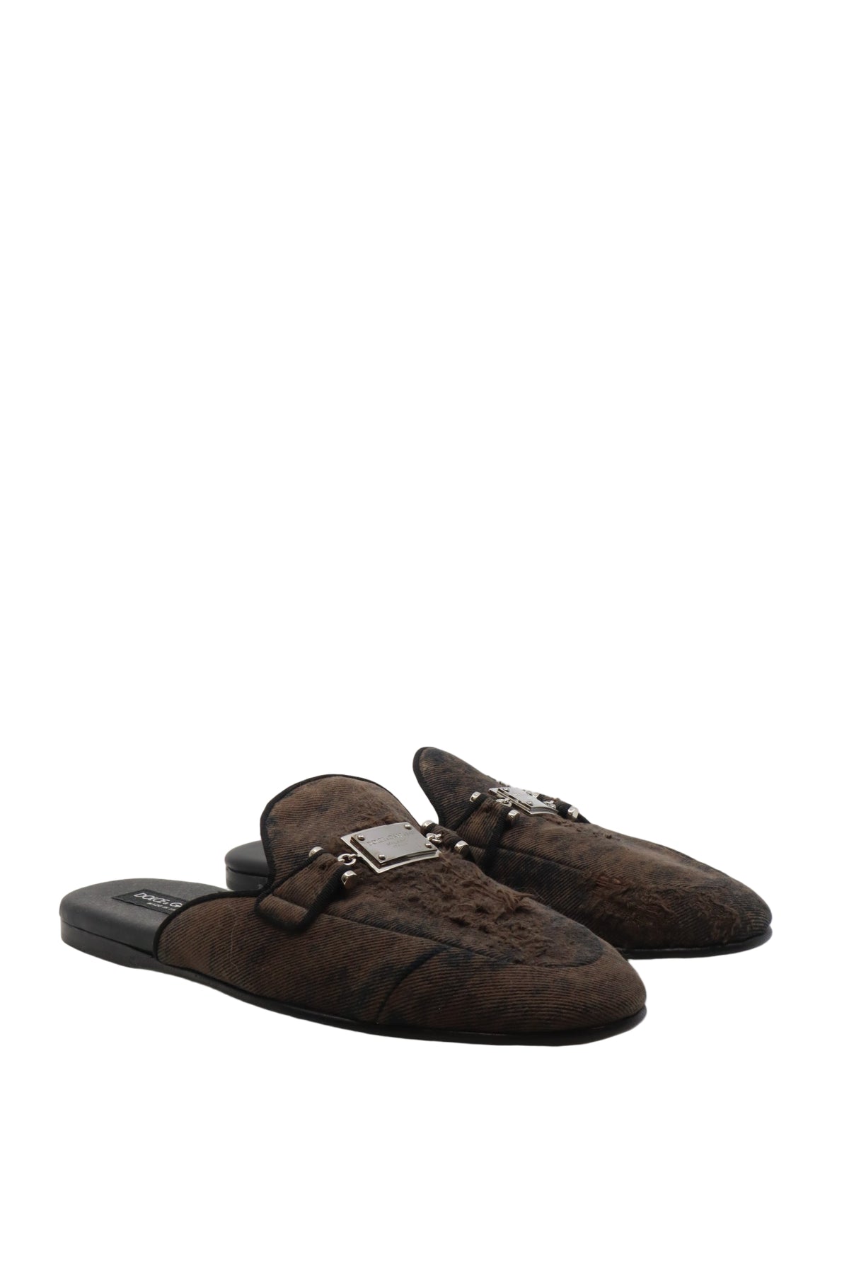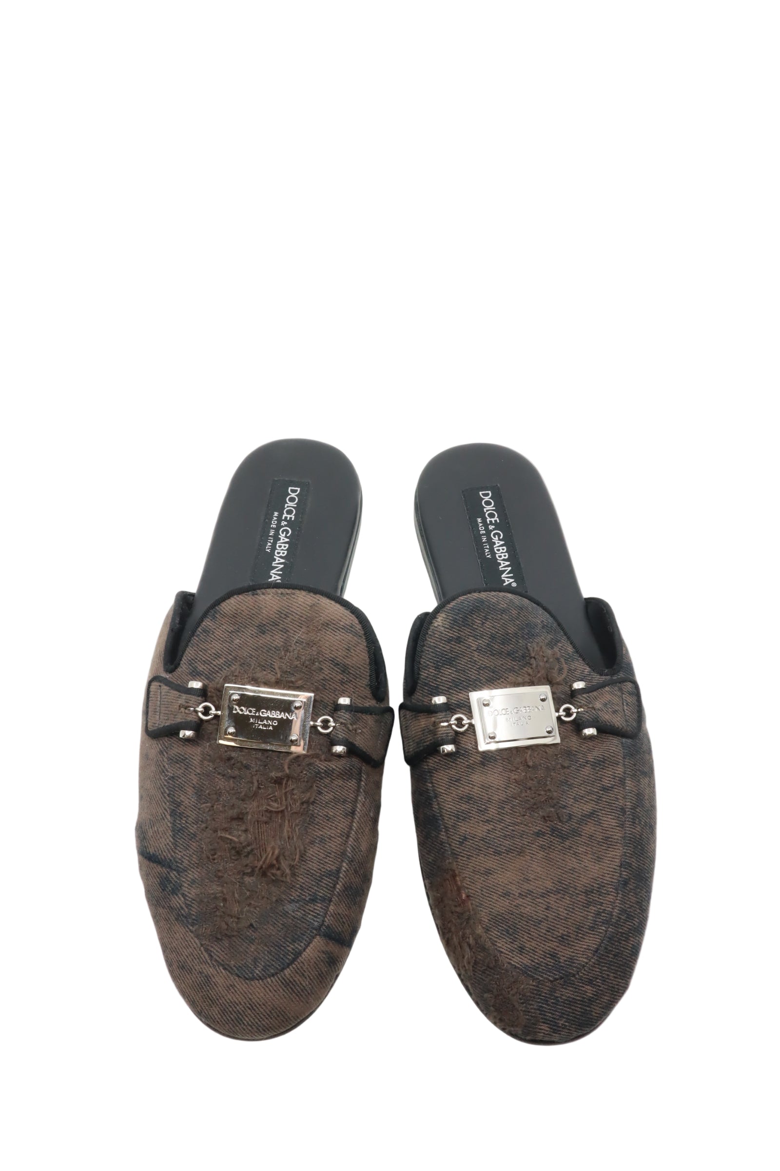 Extravaganz trifft auf italienische Handwerkskunst – dieser offene Mules-Schuh von Dolce & Gabbana ist ein echtes Statement-Piece. Das strukturierte Obermaterial in warmem Braun mit dezenten Used-Effekten verleiht dem Modell einen avantgardistischen Look. Ein silberfarbener Schnallendetail sorgt für einen edlen Kontrast und rundet das Design stilvoll ab. Die flache, offene Form macht diesen Schuh ideal für modebewusste Männer, die selbst zu Hause oder im Sommerurlaub nicht auf exklusiven Stil verzichten möchten.