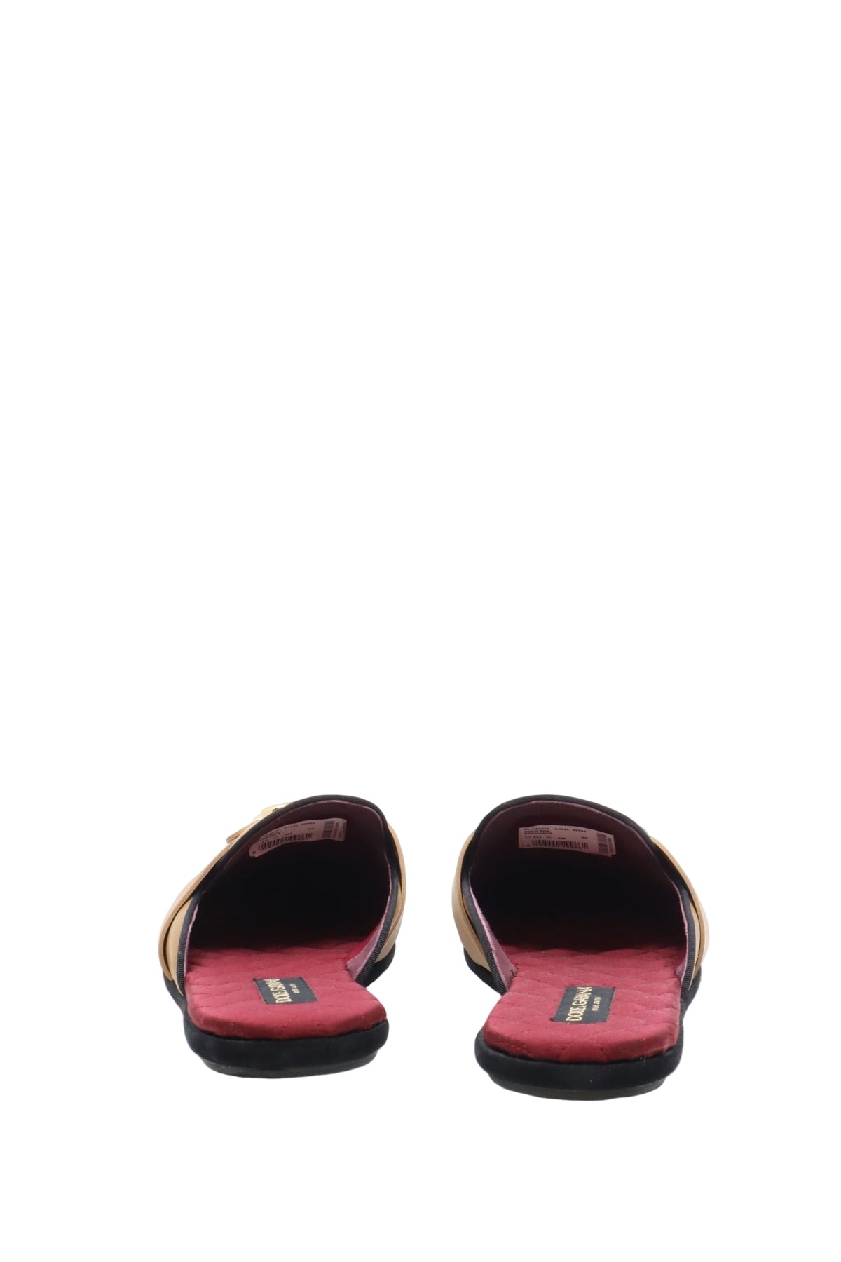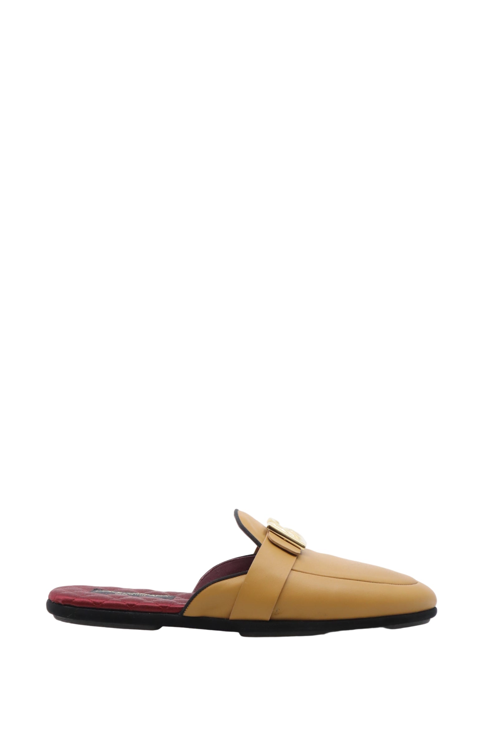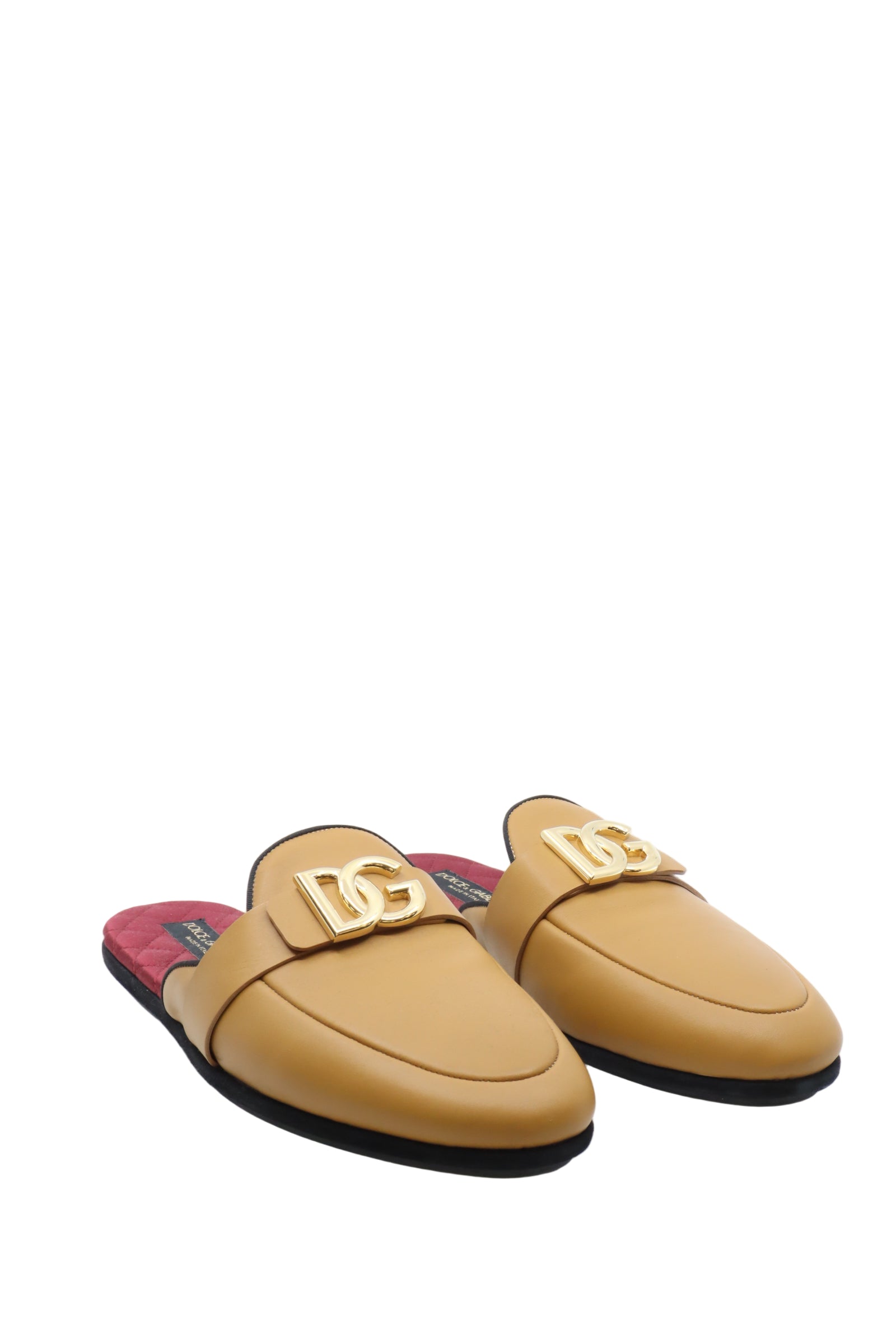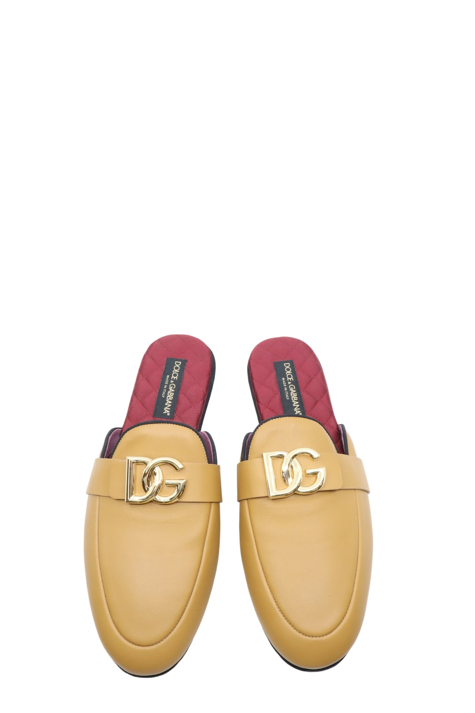 Diese offenen Mules von Dolce & Gabbana setzen auf sommerliche Eleganz mit einem Hauch italienischer Extravaganz. Gefertigt aus feinem glattem Leder in warmem Camelton, überzeugen sie mit einem klaren, modernen Design. Die goldfarbene DG-Applikation auf dem Spann verleiht dem Schuh einen luxuriösen Akzent, während das gesteppte, weinrote Fußbett für stilvollen Komfort sorgt. Ideal für entspannte, stilvolle Looks mit Charakter.