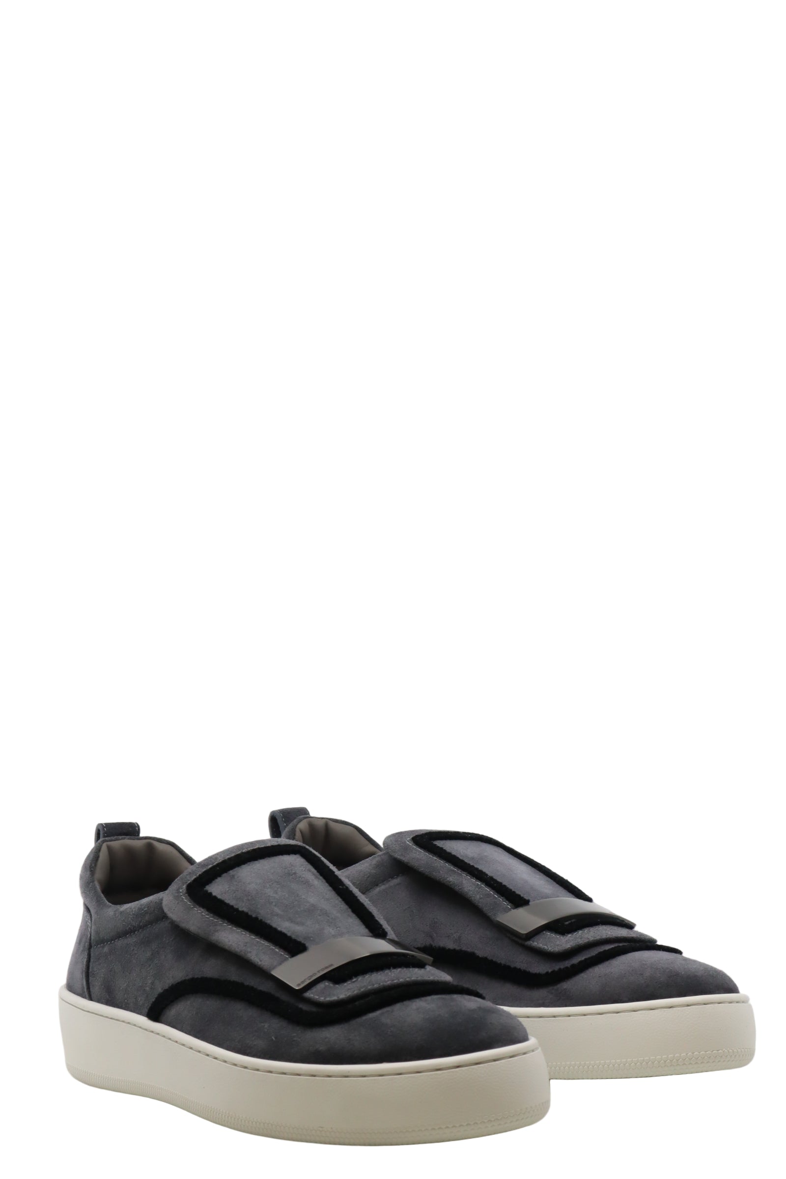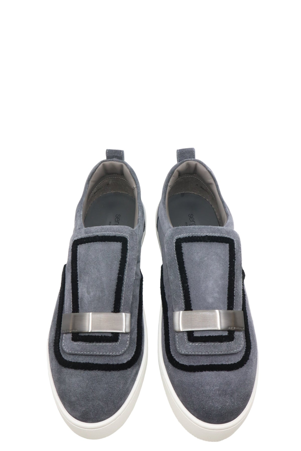Diese luxuriösen Slip-On Sneaker von Sergio Rossi vereinen urbanen Komfort mit stilvollem Understatement. Das edle, dunkelgraue Veloursleder verleiht dem Schuh eine elegante Note, während die breite Zunge mit dekorativer Schnalle für einen modernen Twist sorgt. Die helle Gummisohle bildet einen stilvollen Kontrast und bietet gleichzeitig exzellenten Tragekomfort. Perfekt für modebewusste Männer, die auf dezente Raffinesse setzen – ob im Alltag oder zu gehobenen Casual-Looks.