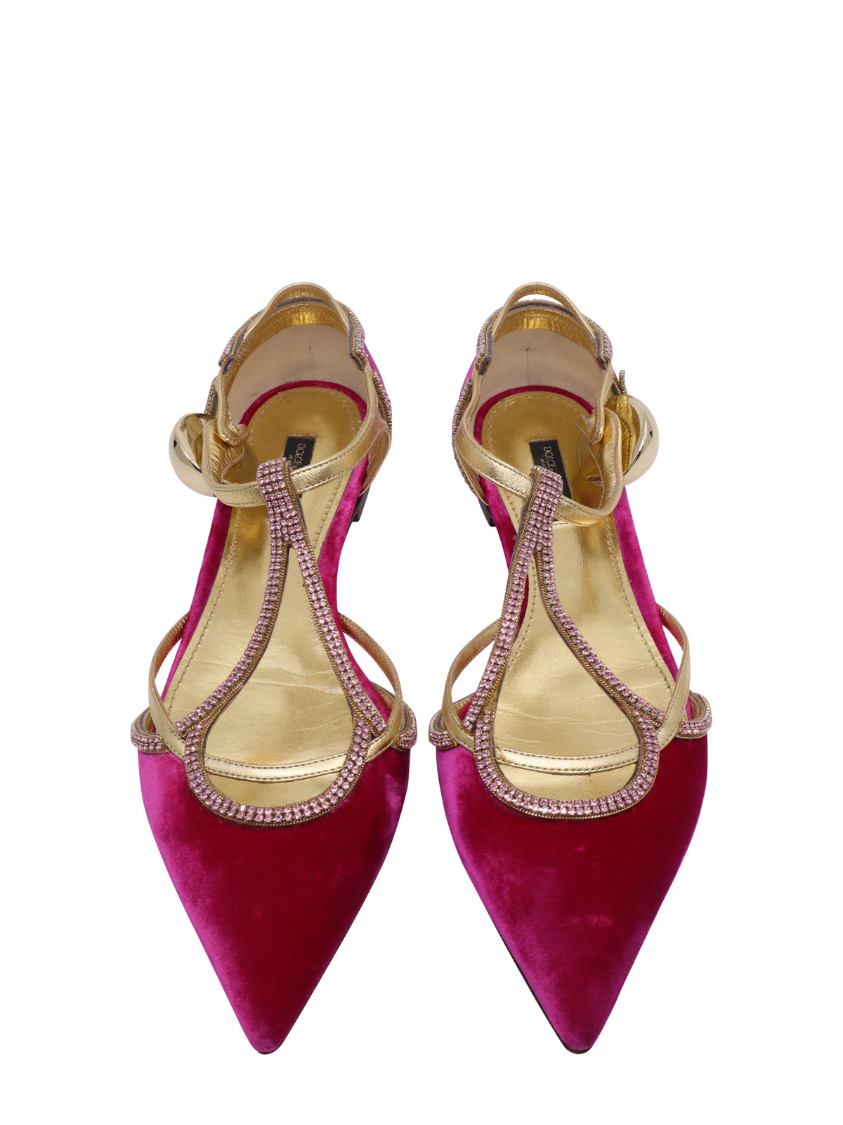 Erhöhe deinen Stil mit den geschlossenen, aus samt gefertigten Sandalen von Dolce & Gabbana! Die dunkel pinken Schuhe sind nicht nur ein Hingucker, sondern bieten auch höchsten Tragekomfort. Perfekt für elegante Anlässe oder um deinem Alltagsoutfit das gewisse Etwas zu verleihen