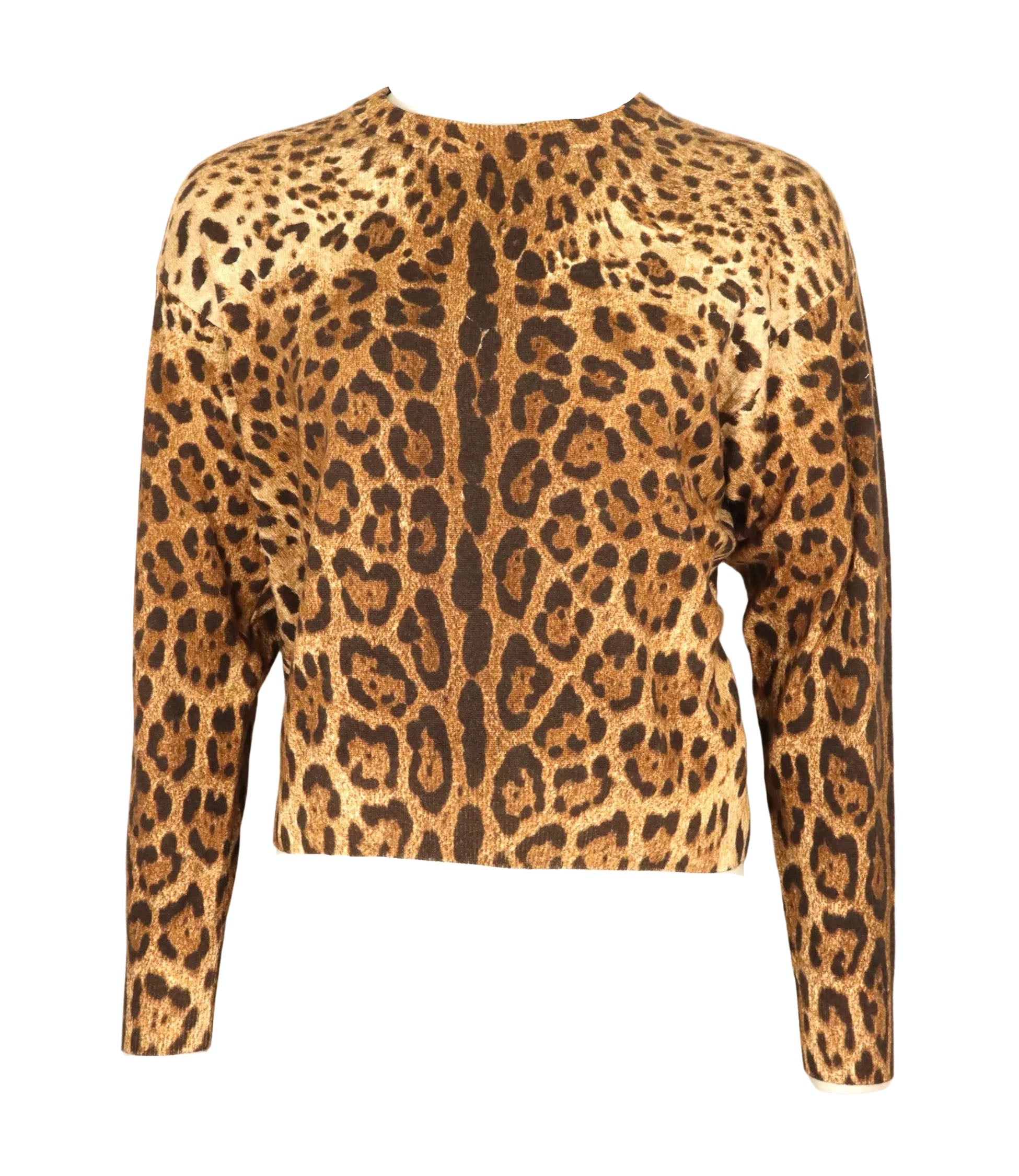 Ein ausdrucksstarkes Fashion-Statement von Dolce & Gabbana: Dieser edle Pullover mit Leopardenmuster vereint Glamour und Selbstbewusstsein in einem Look. Das figurbetonte Design und der hochwertige Strickstoff schmiegen sich angenehm an den Körper und sorgen für ein luxuriöses Tragegefühl. Die natürlichen Brauntöne mit schwarzen Akzenten unterstreichen die wilde Eleganz des Animal-Prints – ein Klassiker im typischen D&G-Stil. Perfekt kombinierbar mit schlichten Hosen oder Röcken für einen starken Auftritt.