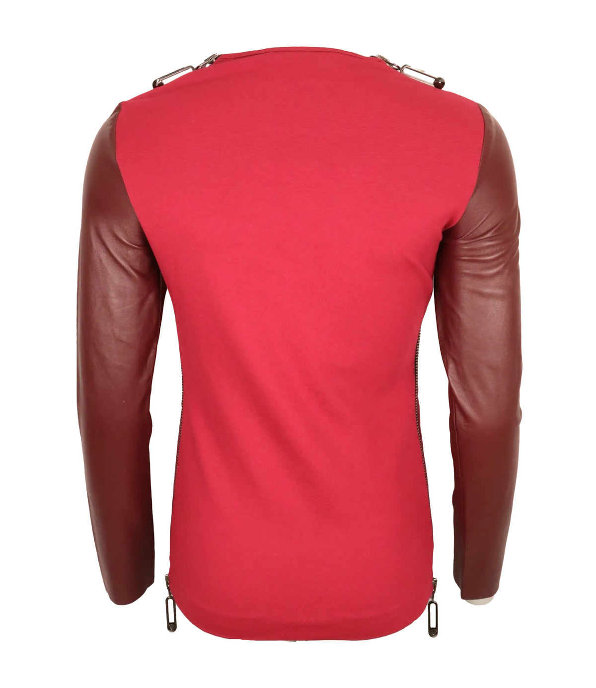 Dieser extravagante Pullover von Philipp Plein setzt ein klares Fashion-Statement. Die Kombination aus bordeauxrotem Wildleder vorne und glatten Lederärmeln verleiht dem Oberteil eine luxuriöse, rockige Ausstrahlung. Rückseitig ist der Pullover aus stretchigem Baumwollstoff gearbeitet – für optimalen Tragekomfort. Auffällige Metallkarabiner an den Schultern sowie Reißverschlüsse an den Seiten unterstreichen den typischen Plein-Look: edgy, selbstbewusst und exklusiv. Ein absolutes Highlight für modeaffine Frauen, die das Außergewöhnliche lieben.