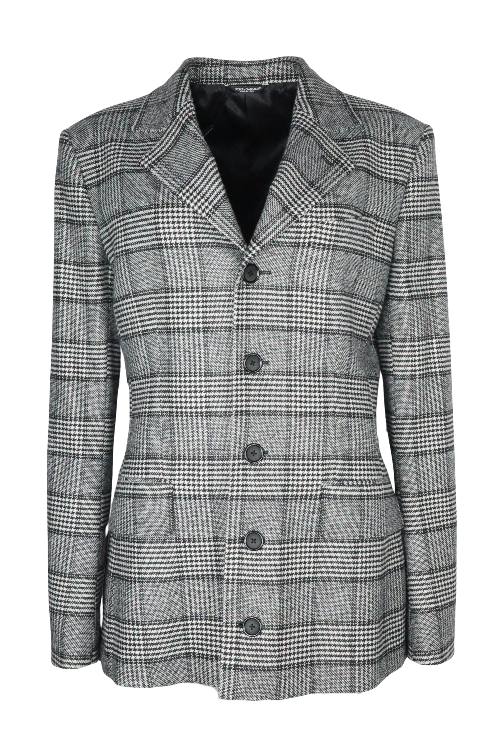 Dieser klassische Blazer von Dolce & Gabbana überzeugt durch zeitlose Eleganz im Glencheck-Muster. Die strukturierte Passform, das Revers und die durchgehende Knopfleiste verleihen ihm eine edle Business-Note. Der fein gewebte Wollstoff sorgt für ein angenehmes Tragegefühl – ein stilvoller Begleiter für Büro und gehobene Anlässe.