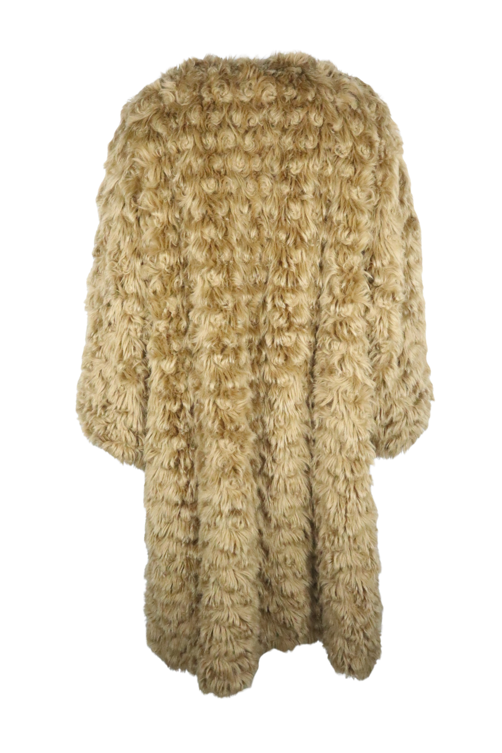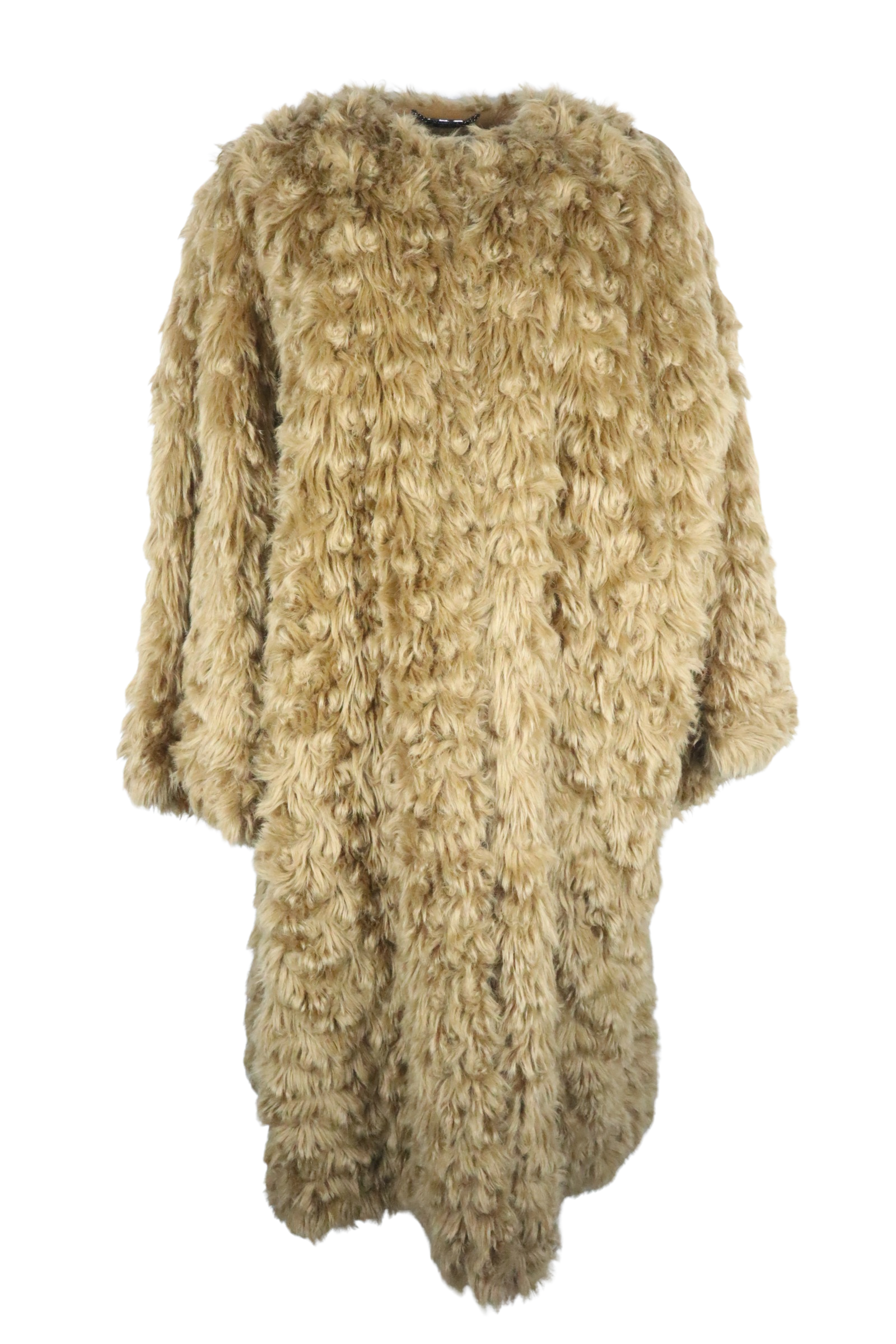 Ein echtes Fashion-Statement: Dieser auffällige Mantel von Dolce & Gabbana begeistert mit seinem voluminösen Design aus goldenem, gelocktem Kunstfell. Der warme Camelton, die weiche Struktur und der lässige Schnitt machen ihn zu einem luxuriösen Blickfang für stilbewusste Trägerinnen. Ideal für die kalte Jahreszeit mit maximalem Stilfaktor.
