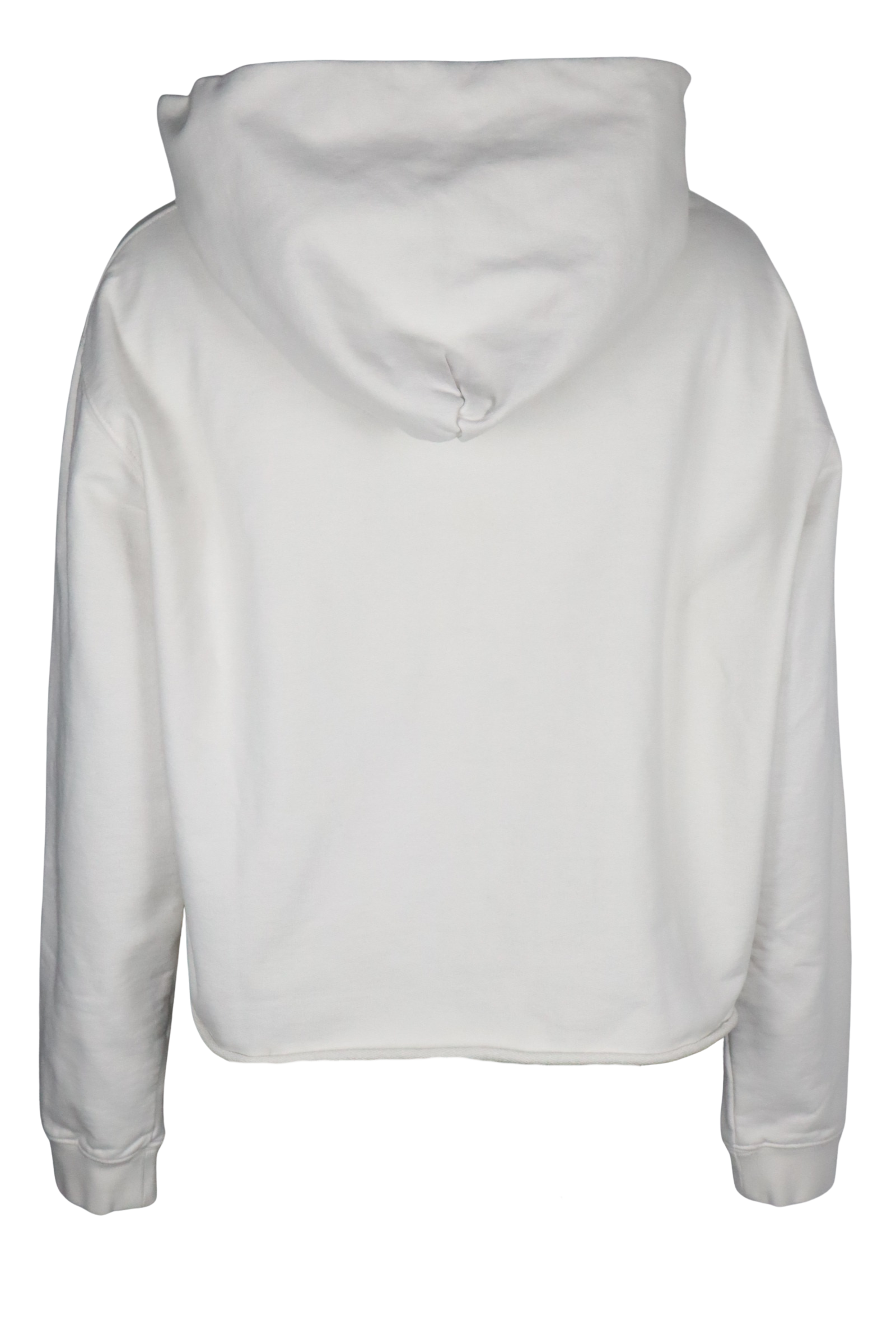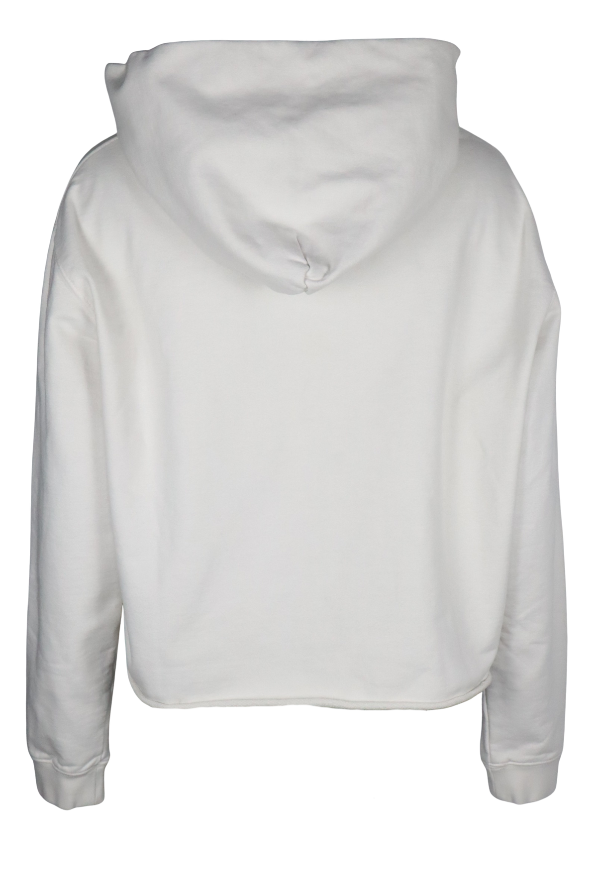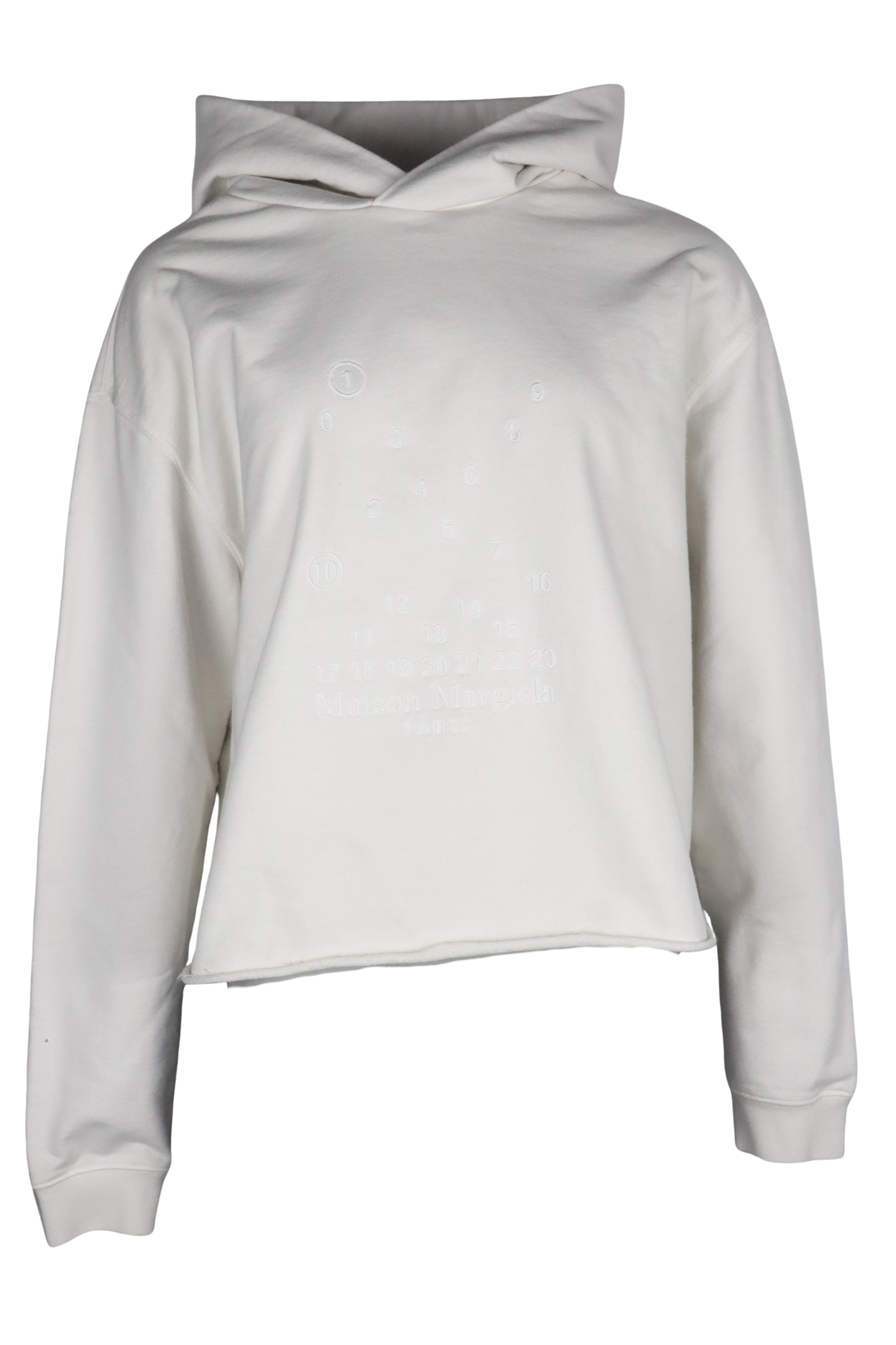 Minimalismus trifft auf Avantgarde: Dieser cremeweiße Hoodie von Maison Margiela begeistert mit seiner cleanen Optik und dem ikonischen, dezent geprägten Zahlenlogo auf der Vorderseite. Der lockere Schnitt, die überschnittenen Schultern und die weiche Baumwollqualität machen ihn zum idealen Begleiter für stilvolle Casual-Looks mit subtiler Markenbotschaft.