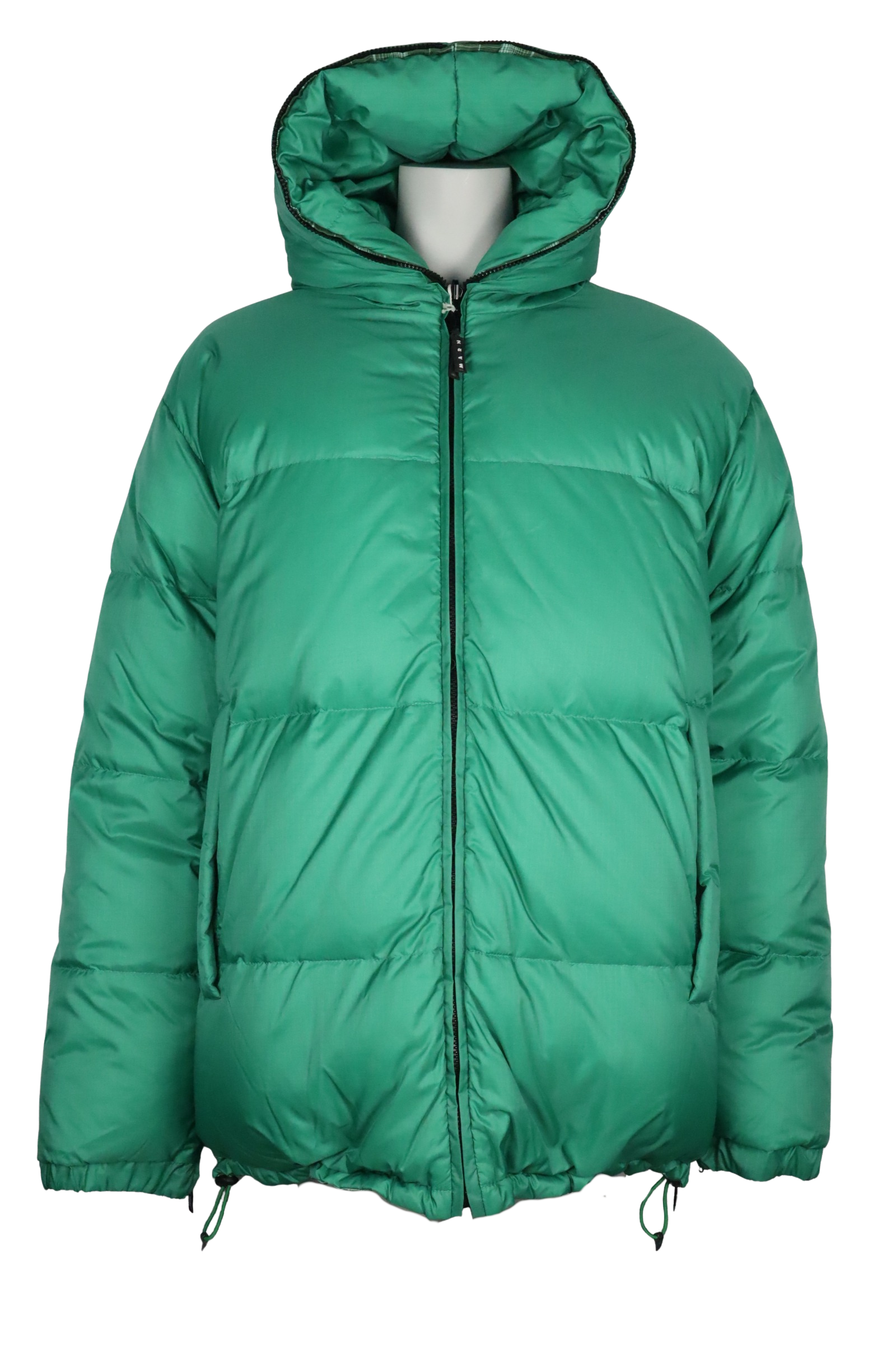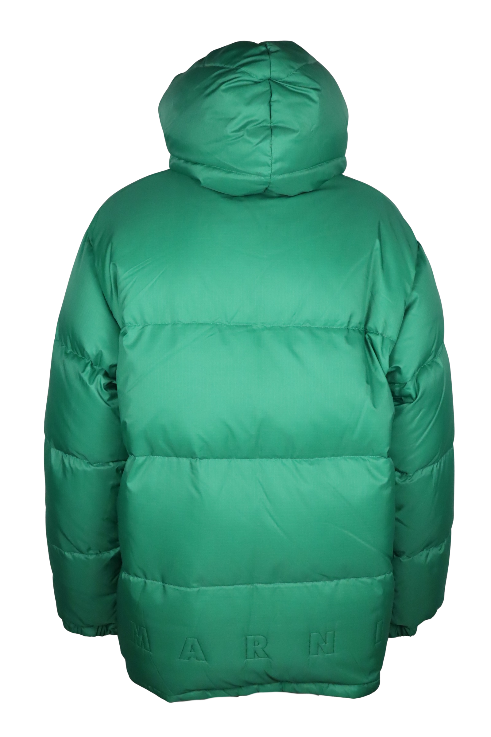 Diese wattierte Daunenjacke von Marni überzeugt durch ihre schlichte Eleganz und satte Farbgebung in kräftigem Smaragdgrün. Das minimalistische Design wird durch eine klare Linienführung, den mittigen Reißverschluss und eine großzügige Kapuze unterstrichen. Der lässige Schnitt mit Tunnelzug am Saum sorgt für optimalen Sitz und individuellen Tragekomfort – ideal für urbane Looks mit modischer Raffinesse.