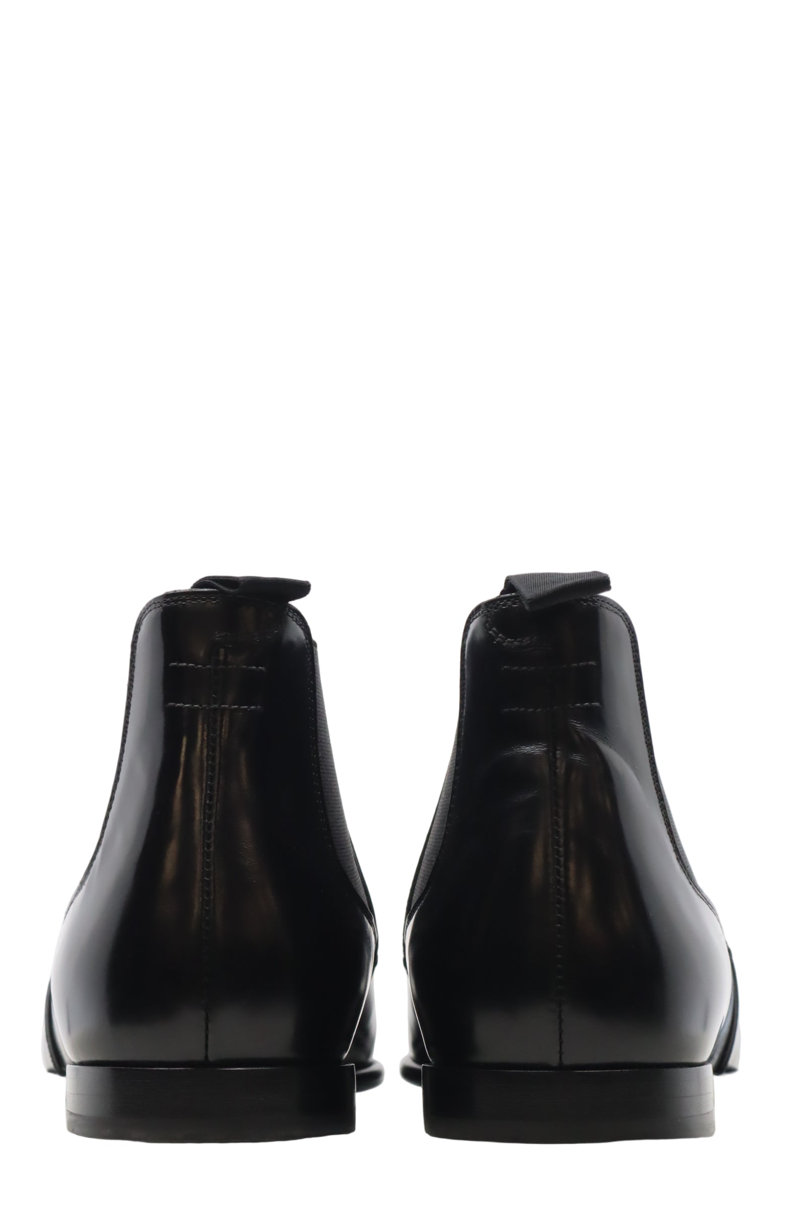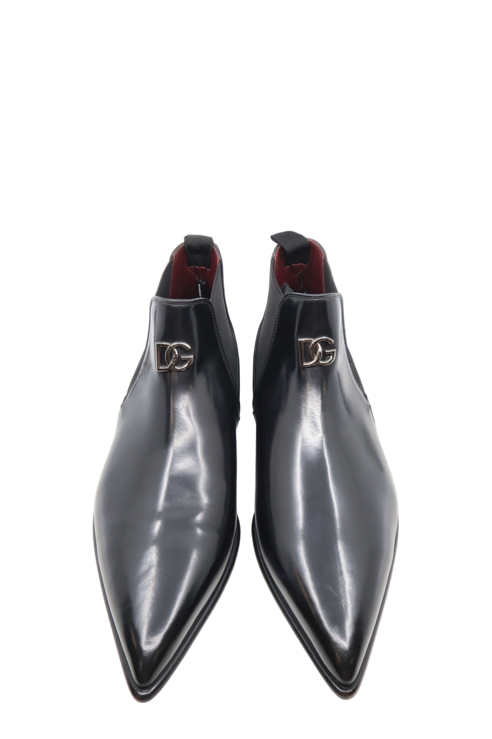 Klassisch, stilvoll und perfekt verarbeitet – dieser Chelsea Boot von Dolce & Gabbana ist die Quintessenz italienischer Eleganz. Gefertigt aus glänzendem, schwarzem Kalbsleder, besticht der Schuh durch seine schlanke Silhouette, seitliche Stretch-Einsätze und eine dezent eingearbeitete Logo-Applikation am Schaft.